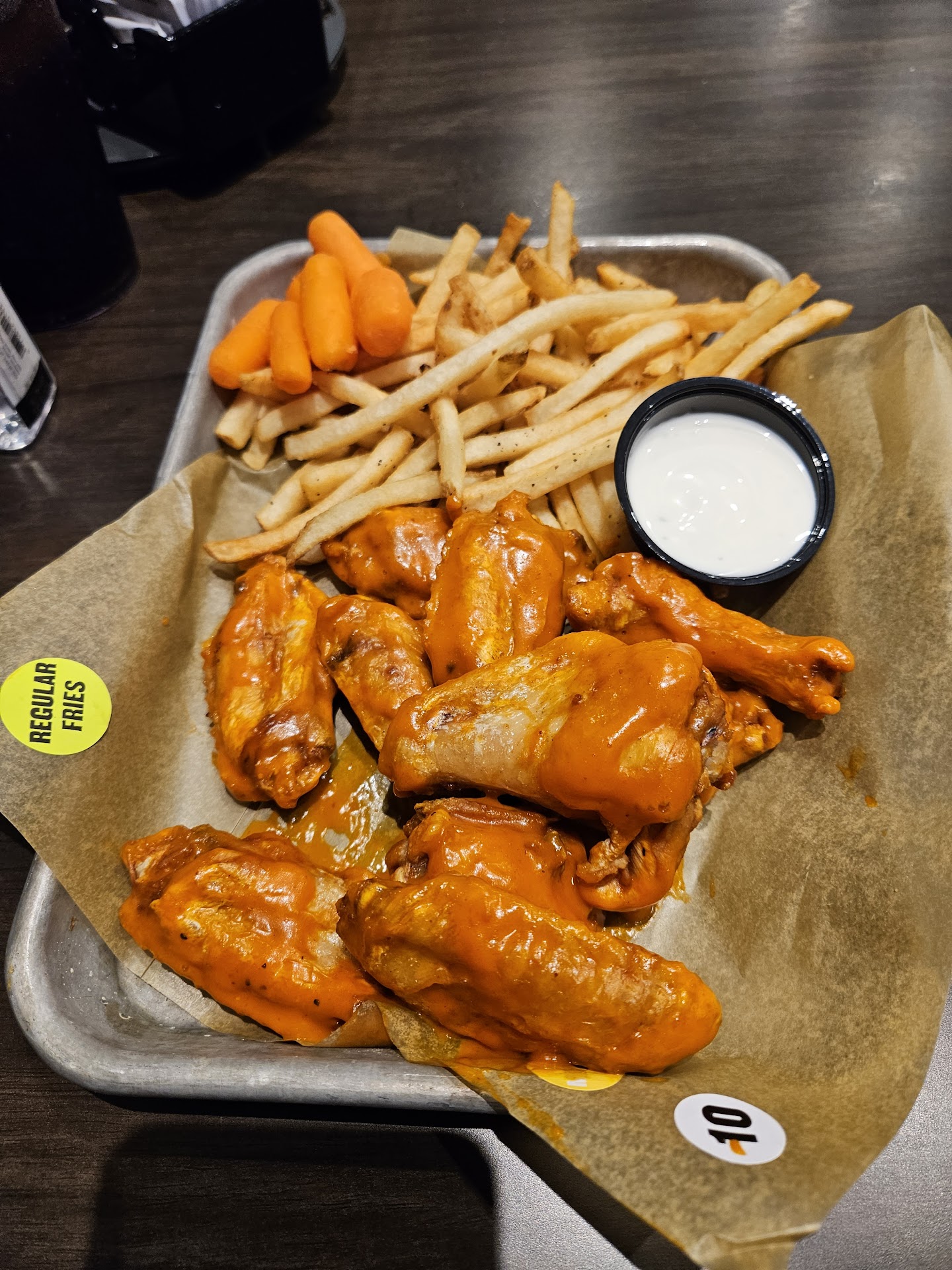 Read moreWednesday special is currently all you can eat boneless wings with fries for 20 $. I went with 1 other adult and a teenager. I ordered 10 wings in 2 different sauces that were not dry rub. Original Buffalo and mango habinero. My spouse ordered a brisket burger and my son ordered the Wednesday special. We also ordered fried pickles and cheese sticks. Horrible food presentation. The Food temperature was at a tempature my microwave can exceed on 1 min. Food taste had no flavor and the original Buffalo flats when she presented it to me, were dry with no sauce. She proceeded to explain to me that the sauce had probably already dried out and she would bring me a cup of sauce. The brisket burger was soggy and fries were under cooked or had been out for way to long. The cheese sticks were also not cooked fully. The waitress offered another basket of fries as if she was going above and beyond her job however we got the all you can eat meal so therefore it was apart of the meal and not a courtesy. She also did not take the wings back. The enviroment was very loud. They turn the music off for the lakers game but had the Olympics with no subtitles on and the music playing half songs. I never got to hear 1 full song the whole time I was there. I won't go back to this location. The workers are standing around. They need to have a rag in their hands and looking busy. The host standing around looking at the sky wasn't cutting it for me. Wipe down menus, make sure the front entrance and waiting area looks presentable, sweep entrance. There is so many things you could be doing, standing around shouldn't be one of them. The waiter needs to not make excuses for the cook and be better mindful with common sense that if the food doesn't look presentable or their is something wrong with it since she did take the order down so she knows what we ordered, speak up and say something before it comes out. They want tips yet fail to do their job for the tip. She unfortunately did not receive a tip from me. She didn't do anything but the bare minimum for me and her employer Is paying her bare minimum, if she wanted a tip she needed to do a tip job. Be in tip top shape. It also felt musty in the enviroment like the place needed a double scrub. It didn't feel clean to me. I felt like I was in a musty and...