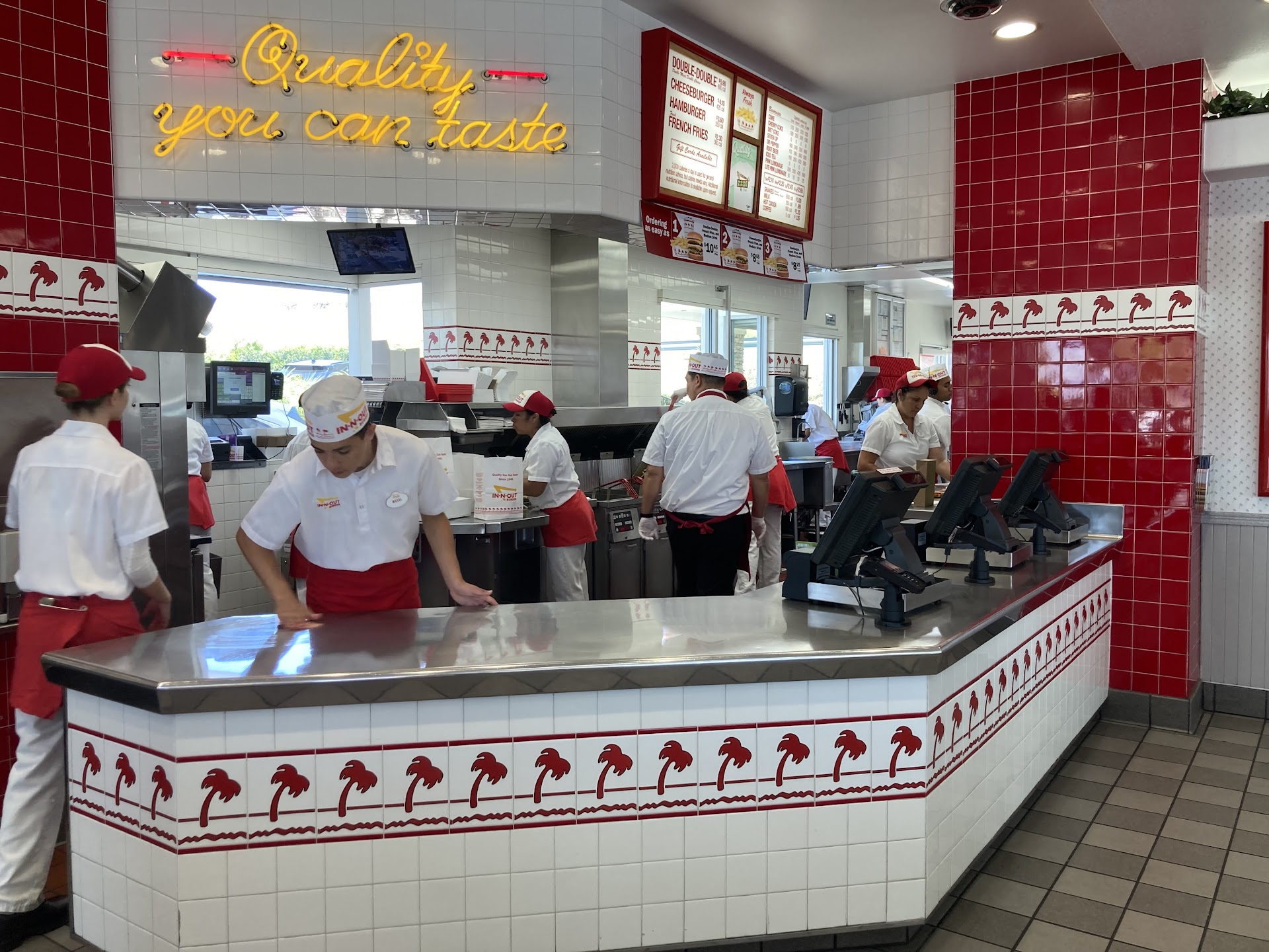 Highly Recommend this In-N-Out 🍔 Burger location... Stellar Service & amazingly gets our super picky orders correct 💯% of time & always has fresh PINK lemonade 😁 🍔 GREAT #Animal #DoubleDouble & secret menu spot👍 Luv the special Animal w/ Vanilla 🥤 shake, Healthy 🍟fry's here! Yay If in Drive-thru You can watch them make all fries on wall press. The whole kitchen is visible thru drive thru windows. Fun 2 watch Staff work so hard & well. Amazing company & extremely well operated location. Again lots of secret menu options here too. Really enjoy the outside patio w/ umbrellas 🏖️ & tables or the covered portion w/ several tables and benches. Can be a wait sometimes if in Drive-thru but they r very assertive @ mitigating & use creative ways to speed up orders by making more lanes or hav staff outside taken orders as well. They work really hard here. Totally it's worth it. Sometimes You can even hear the Staff singing:)) Get off Lincoln/Nohl Ranch ..The 91 or The 55 will work...smell Ur way 2 stellar burger 🍔 joint. Seriously everything else is choice here. The clothing is fresh & literally on wall 🧱 when in line on right side after bathroom hallway. Great values on T-shirt's 👕 & online store QRL is awesome. Goes straight 2 online store with instant & easy POS system. Clothing is more than just famous tahirts. Nieces really like their tied-ied 👖 pants & matching shirt they saw in ad! The clothing quality is as Good as the Food is yummy & world famous. Go2- Animal Quad 3 Bun (NO mayo based sauce tho...don't want 2 ruin such great fresh food). Defly gotta get largest tray possible on such healthy fries 🍟 too Vanilla Shakes r like soft serve ice 🍦 cream so i go big...lol In-N-Out 🍔 Burger is among Best values of any restaurant around ...and among tastiest! Healthyish aspects too. Really digg this location alot. Extremely clean. Double drive thru intake & speedy inside. Staff is incredibly kind & helpful 2 ADA folks. Lots of Handicap parking 🅿️ upfront. Also hav wonderful hiring system. Really helps out folks managing school & a job! Enjoy ......