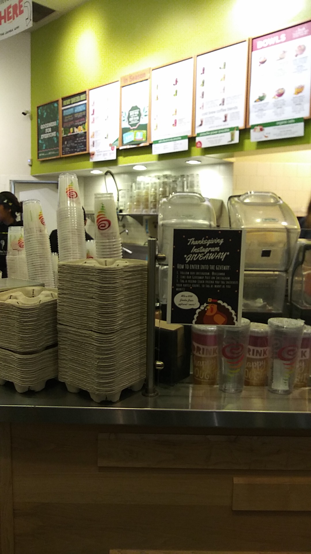 The place is really busy and when I say busy, there is a line right out the door. If your planning getting a drink within 5 minutes, think again, the normal wait time is around 10-12 minutes but it is worth every penny if you love Jamba Juice. Today I had the banana Berry, it was the best cold drink on this very hot day. Again, this goes to the entire staff at Jamba Juice...You guys are doing awesome job. Thank you,