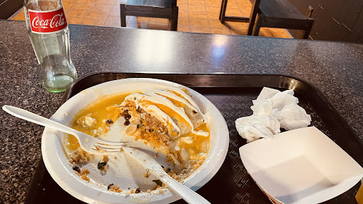 We just ate the green wet burrito and five carnitas tacos with the green salsa. When I say these are the BEST tacos I've ever consumed, i mean it! I've been eating tacos since I was a kid and have eaten at over 30 different restaurants including the fast food options. These are very much worth it, the flavor was bold and delicious, the crispiness of the carnitas was perfection , the tortillas didn't fall apart, and the salsa was to die for! The green salsa is perfect for those who can't handle too big a kick with their spice. The wet burrito was full of meat, so tasty and topped with cheese and sour cream. It was filling my partner up three quarters in which is saying a lot. The atmosphere was perfect, nice and quiet for me. The inside was clean and had about five tables where you can sit four average sized adults at each one.( Might've been five tables. ) We had to buy their salsa and chips to go because of how delicious it was! Overall a delicious meal, 100/10 would highly recommend! P.s. i forgot to take a picture of our food because we...