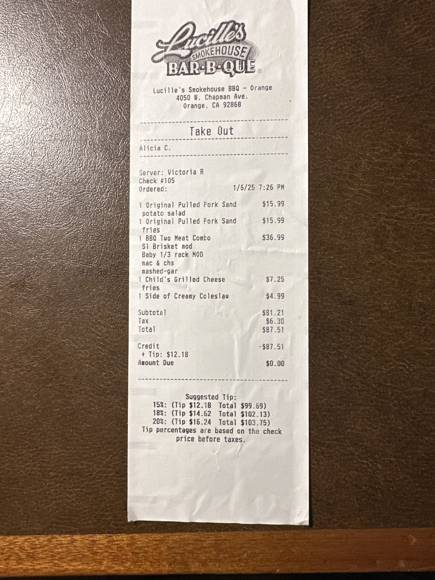 Read moreThanksgiving is a time for warm, comforting meals shared with loved ones, but my experience at Lucille’s on Chapman and Louis Street was anything but. It was a holiday disaster that left me frustrated and without a meal to enjoy. Food Quality: The food was absolutely appalling. The turkey, the centerpiece of a Thanksgiving meal, was served cold and tasted as if it had been sitting out for far too long. The gravy, which should be rich and smooth, was thick and chunky, further proof of how long it had been neglected. To make matters worse, not everything that was promised on the menu was served. The mac and cheese, which I was looking forward to, was almost laughable. It barely had any noodles, and what little there was felt overcooked and mushy. It was clear that no care or effort went into preparing the dishes, leaving me deeply disappointed on a day when food should be the highlight. Customer Service: The service was equally terrible. When I politely brought up my concerns about the food, I was met with rudeness rather than understanding. Instead of addressing my complaint or trying to make the situation right, the staff dismissively told me to go back to my seat, offering no resolution or apology. The lack of courtesy and basic customer service was shocking, especially on a holiday when people are supposed to feel welcomed and cared for. Overall Experience: This visit left me so dissatisfied and unwelcome that I ultimately left the restaurant entirely, with nothing to eat on Thanksgiving. Lucille’s not only failed to provide a warm, enjoyable holiday meal but also demonstrated a lack of respect for their guests. Final Thoughts: Lucille’s completely missed the mark on what Thanksgiving is about—good food and good company. Cold turkey, chunky gravy, a half-empty menu, and dismissive service made this one of the worst dining experiences I’ve ever had. I would not recommend Lucille’s to anyone, especially during the holidays. Rating: 0.5/5 Lucille’s needs to rethink how they prepare and serve their meals, as well as how they treat their customers. No one should have to leave a restaurant on Thanksgiving...