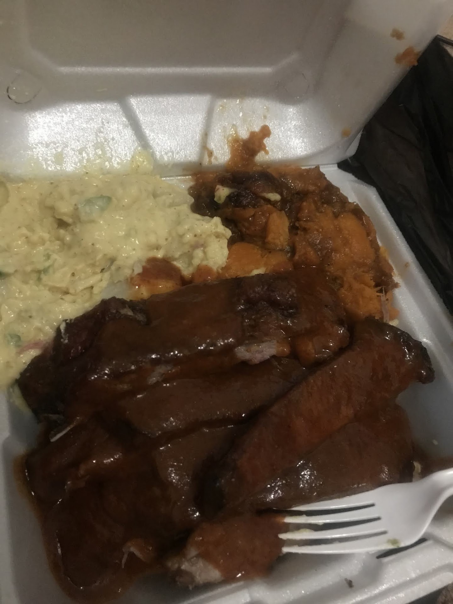 The food is really good. Ok, wait. Let me just say the RIBS are great. I dont partake in anything else because the presentation isnt the greatest. The one thing I absolutely hate is the customer service and the cleanliness of this place. The owner is a a major player in this. He isnt cordial to his customers at all. Seems like he has a chip on his shoulder. They're use of gloves gets an F because he will make your food AND take your money with the same gloves!!!!!