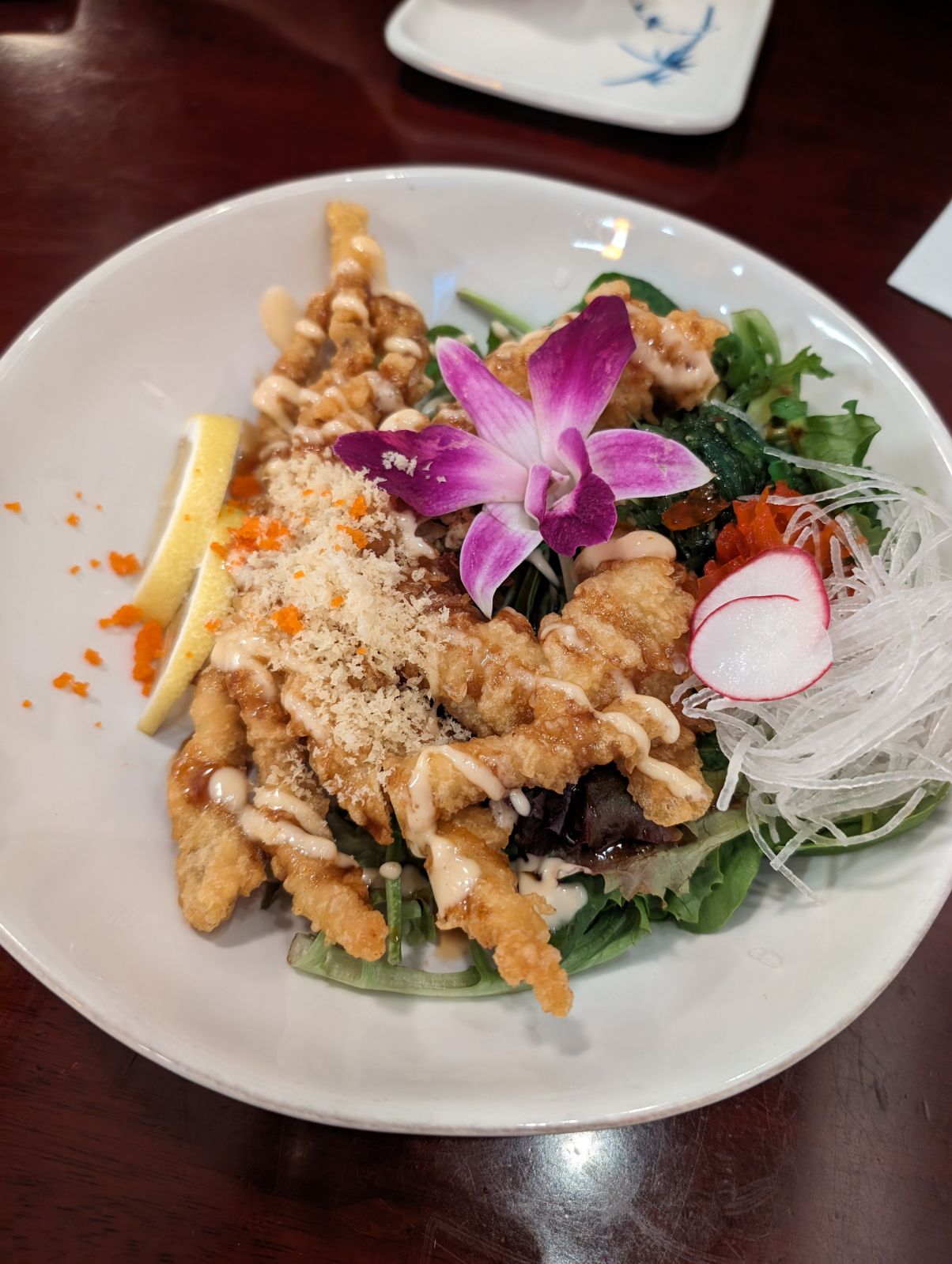 The sushi was amazingly 😍 fresh. The place was clean and the presentation was on point. I loved the quaint atmosphere. We had an appetizer of blue soft shell crab. The breading was a bit thick and the crab was rather moist. The flavors were good but I'm not sure I would order that if I went back. Only because the balance of bread to fish ratio was so so. I think this combination could have been pronounced better with a sauce. We also ordered some egg rolls but again, their sushi was so good, had I to do over again I would have saved all my stomach space for another roll instead of the appetizer. The sushi was 5 stars +, the egg rolls 3.5*, and the soft shell crab 3.5. The mango tango roll had so many flavors going on I did not even want to use the soy sauce as it may overpowered all of the other delicate flavors happening within the roll. Same with the crazy monkey, loved the cashews and sauces and did not want to overpower the delicate flavors with soy sauce. The service was attentive to all of our needs. We also had Yuki Sake and that was delicious with a slightly sweet taste but not overwhelming. I would go back there in a heartbeat for their sushi and service.