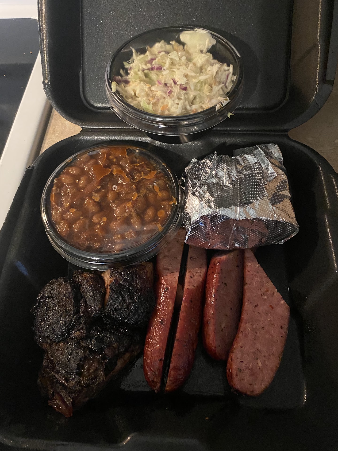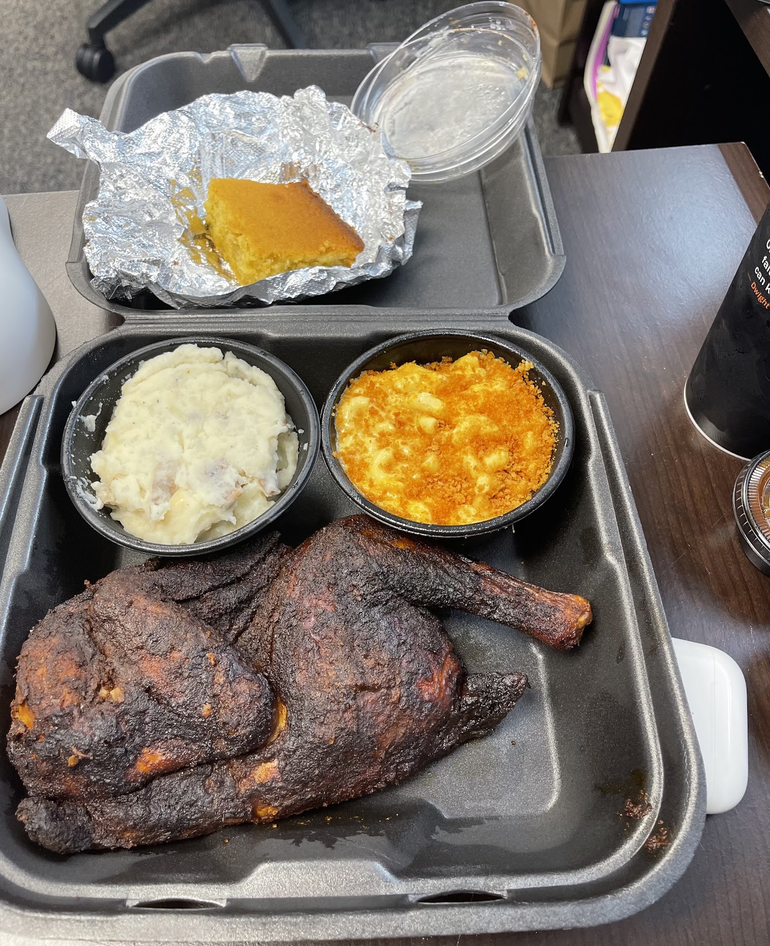 Read moreThis was my first time in this restaurant and let me tell you, I was absolutely blown away by the customer service. Prior to deciding to eat here myself and my lady went to a couple different spots, first place didn’t even acknowledge us really, they simply turned to look at us and kept talking amongst themselves, there was even someone who wasn’t staff behind the counter hanging out and we were basically ignored because they were busy chatting. Second place had a line and didn’t even seem to be very appealing to be honest and once again it seemed more like a hang out rather than a business. When we finally googled food near me and came upon this place we said “hey let’s give it a try”, as soon as we walked in all the staff turned to us and said hello, welcoming us in with smiles. My lady turns to me and says “oh I know you like this place already !”, I laughed. We proceeded to walk in smiling because it just felt right, the vibe was exactly what we wanted and the aroma of the food that was cooking was amazing! We were reviewing the menu and couldn’t make up our minds on what we wanted because it all sounded great, low and behold the offer samples… just for context I’m not big on turkey, not that I don’t like it but I feel like it’s often too dry, so I decided to try the turkey, and I was not disappointed. We decided to get the 3 meat sampler (turkey, pulled chicken and brisket) with smashed potatoes and Mac and cheese, it came with a side of corn bread and dipping sauce. I can honestly say that I loved everything we ordered. At the end of our me we were surprised with a dessert, which was highly appreciated. The experience overall was great and we both agreed that we would definitely...