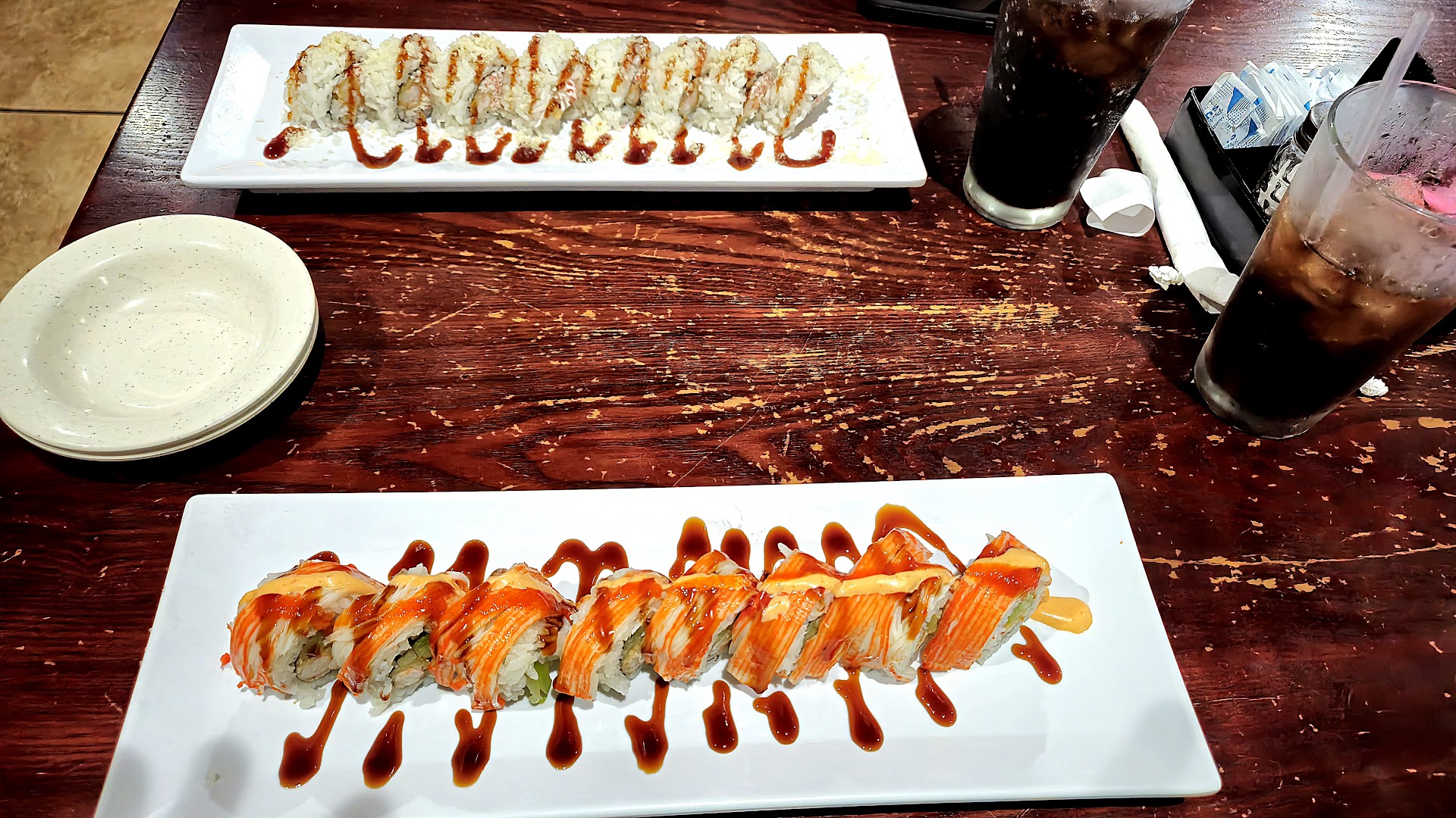 We ordered 2 sushi rolls and the lunch Mongolian bowl + jasmine tea. For what we ordered it was very affordable, around $50. The sushi was okay, both rolls we ordered were cooked and both very fresh, just much more rice than I would normally expect.