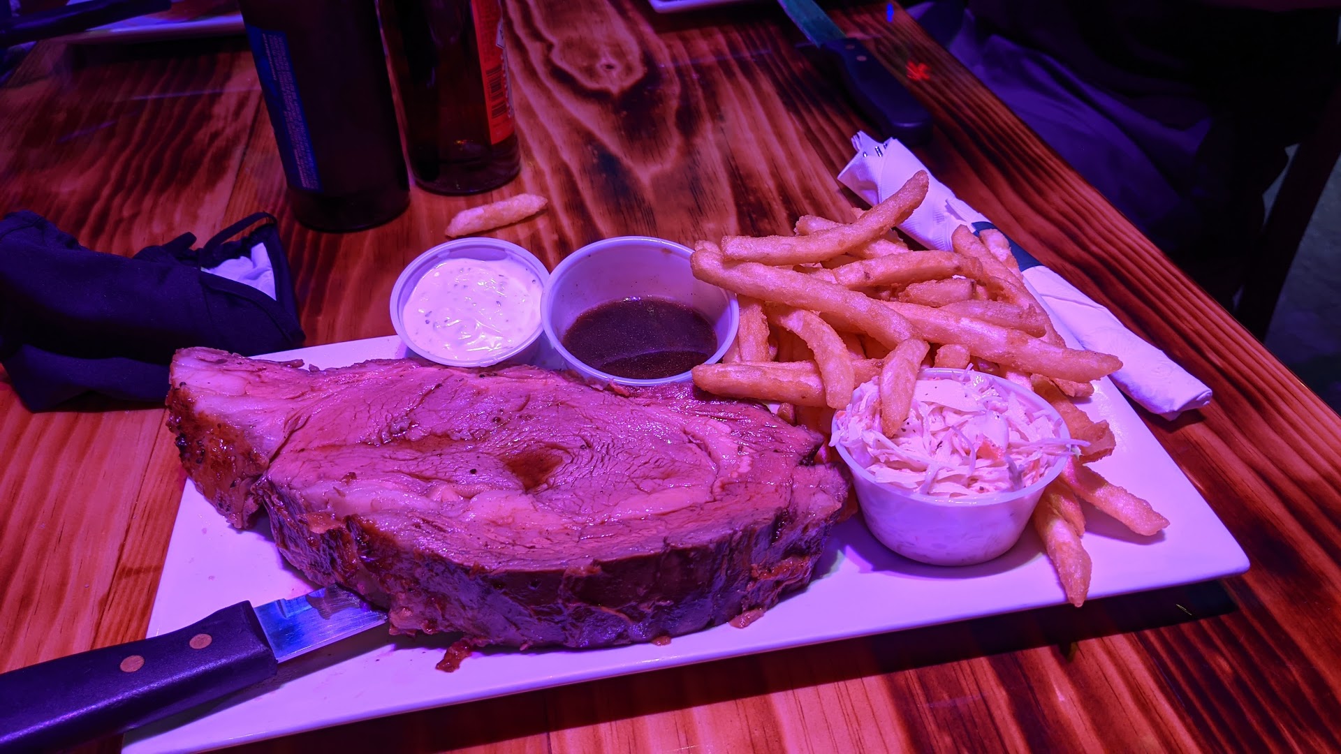 The rear half of both sides wrap into another seating area at the rear of the bar and leads outside to a patio area (I did not go back there). The service was okay...