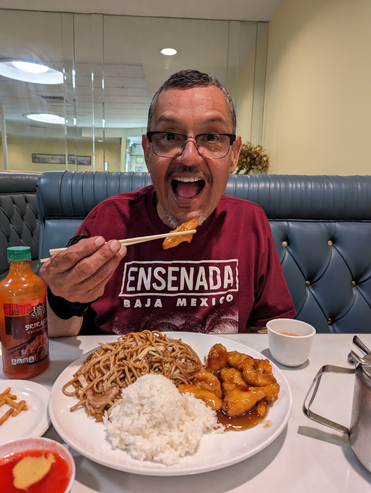 All around excellent. It is the once ubiquitous Chinese-American restaurant in its classic form. The clean interior is traditional diner booths in black weathered and repaired leatherine, broad dark wood frames and railing lining the walls with laquired village scapes on facing walls. Two sets of dragons trot above either end of the dining room with comfortable midcentury chairs at the plastique table-clothed 4 tops. The fare was commensurate with the decor with fresh ingredients including the fried skin of the egg rolls with a hint of peanut butter. The flavors were clear and pleasant. The mustard was vaporous and expansive and nothing was over-salted. A very familiar place not to be missed on atmosphere alone, it adds much to the experience. The waitstaff was a delight. The tiny bathroom a sanctuary. The ice...