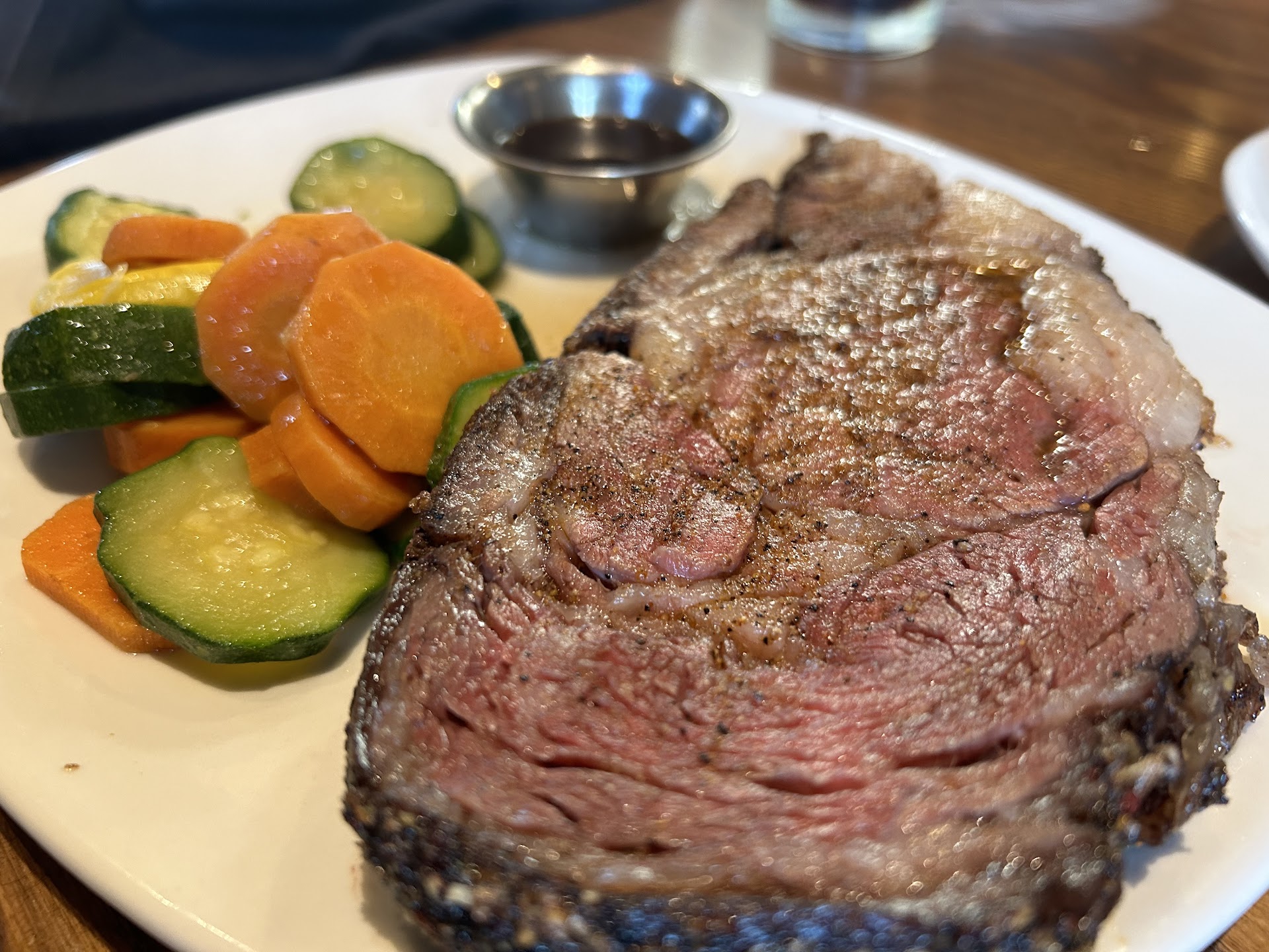 Update from 1 star to 3: I did receive a phone call from both the house manager and the restaurant owner. They sent me a good chunk of money to come back and give them a second try. The service was still a little iffy, but by the end of the meal she seemed more relaxed with us and got better. I'm not sure if it's because I order the 6 oz steak (I don't eat large portions) but again the texture was off. However, everything else was perfectly edible. I certainly won't be adding this to my list of regular restaurants, but for a night out with friends and the kids, it's at least a...