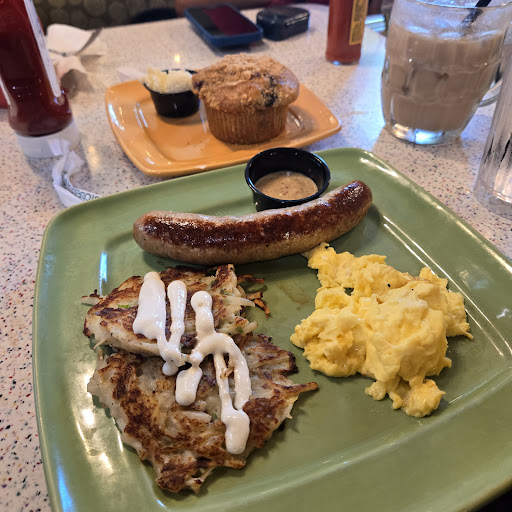 Read moreOur book club opted for late brunch for our monthly meet-up. Not a usual spot to host a book club meeting, but we couldn’t turn down pie. Being a Sunday afternoon, the parking lot had ample space, with plenty of seating available. I came in last, but our party of six got a table quite easily with no wait. Their menu is large, classic diner style options with a separate menu just for their desserts. I opted for one of their specials- Brat and Eggs ($13.99) - Menu stated we could choose any bakery item with this choice, but our server said the only thing I could have was their blueberry muffin. I even said I’d pay the difference for a slice of pie. This was probably when I realized service was not going to be great. I had also asked for a Vanilla Cold Brew ($5.29) - specifically asked for it half sweet. Was it? Maybe to their standards? It was way too sweet for me to finish and she didn’t bother to ask how it was after. Tried Banana Cream Pie and their Pumpkin Praline Cheesecake - just overly sweet and artificial tasting with both. Not really impressed with the service or the food here, even...