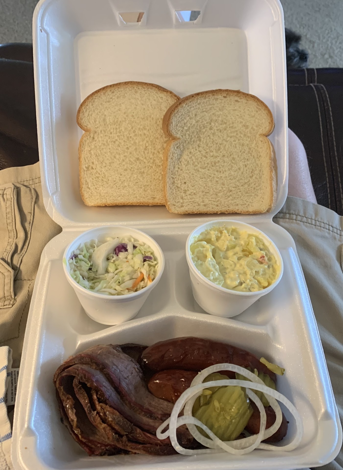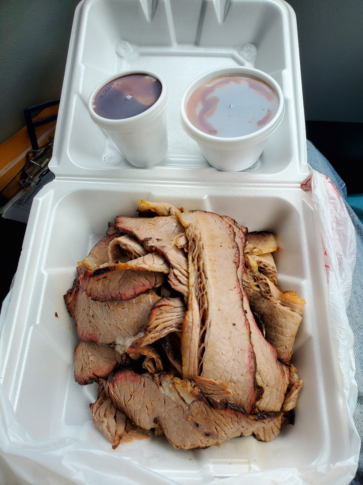 Last night I was one of the last customers in line, arriving 15 mins before closing time. As usual the line was wrapped around the building, so I waited. I set out on a journey just to come to this spot for dinner for my bf and I. It's about an hour round trip. (Worth it.) My bf and I love the Pitmaster so I ordered each of us a sliced brisket sandwich and a side of potato salad and baked beans. I rush home so dinner will be waiting for him when he returns home, he's been working late and long hours I wanted to surprise him. I can hardly wait to eat mine, it smelled so delicious on the ride back home. I'm diabetic so I decided to go ahead and eat before it got much later, so I open the brown bag to pull out the baked beans and brisket sandwich and what I saw was potato salad and a turkey sandwich with pickles and onions. I do not prefer either so I just took them off and had no choice but to eat it. Everything is closed. I'm starving. Exhausted. And still had to make yet another trip into town to get something else for my bf to eat. DQ Steak basket is nowhere near equivalent but what can you do, everything is closed up for the night I have now spent $40 and an hour and a half drive time to get him dinner. He was happy to have food, nonetheless. He chose to eat the potato salad with his DQ, so I handed him the large container and as he dove into it with his spoon he says, this is no potato salad, it's banana pudding!! 😄 His favorite. Almost* like grandma's! He loved it. So in the end, y'all still saved the day! Lol He says kudos to who ever is in charge of making the pudding. Thank y'all! I'll be coming back tomorrow, however for my...