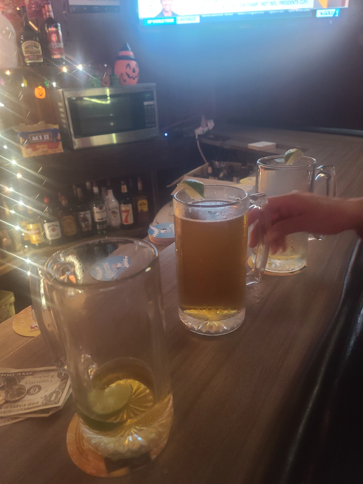 A dozen stools around the bar and pool tables in the back. I didn't use the restroom because I had 2 drinks and bounced. They were folding bar towels as I came in. I was digging the internal stained glass hidden window thingy and the old school cash register. Service was a little slow, but nothing bad, just 1 bartender for a HH swing in a pretty empty bar. I was totally used to the Cumbia music blaring as well as the cheesy fluorescent writing on the black board. T-Mobile 4g service was good inside. Parking is limited up front and even more so on the sides and back.