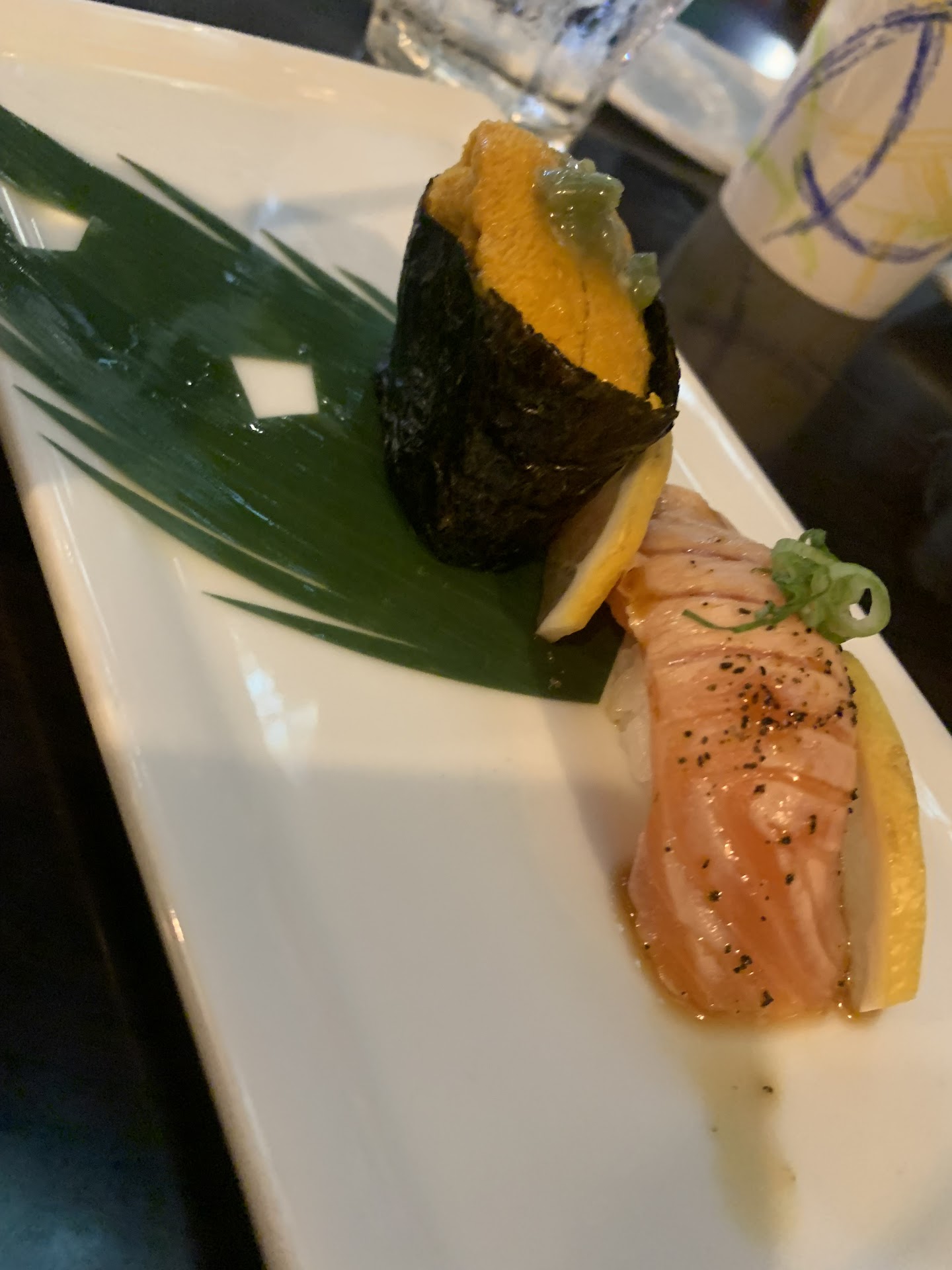 We ordered: Salmon Sashimi. Presentation is on point. Beautiful. Fresh. Pepper salmon sushi and Salmon Sushi. Went really well with the ponzu sauce. Sea Urchin. Amazing. Fresh. We ended up getting this again and again. Salmon Lover. Amazing. Cucumber Special. Perfect. Fresh!!! AMAZING! Salmon Collar. Pork Katsu