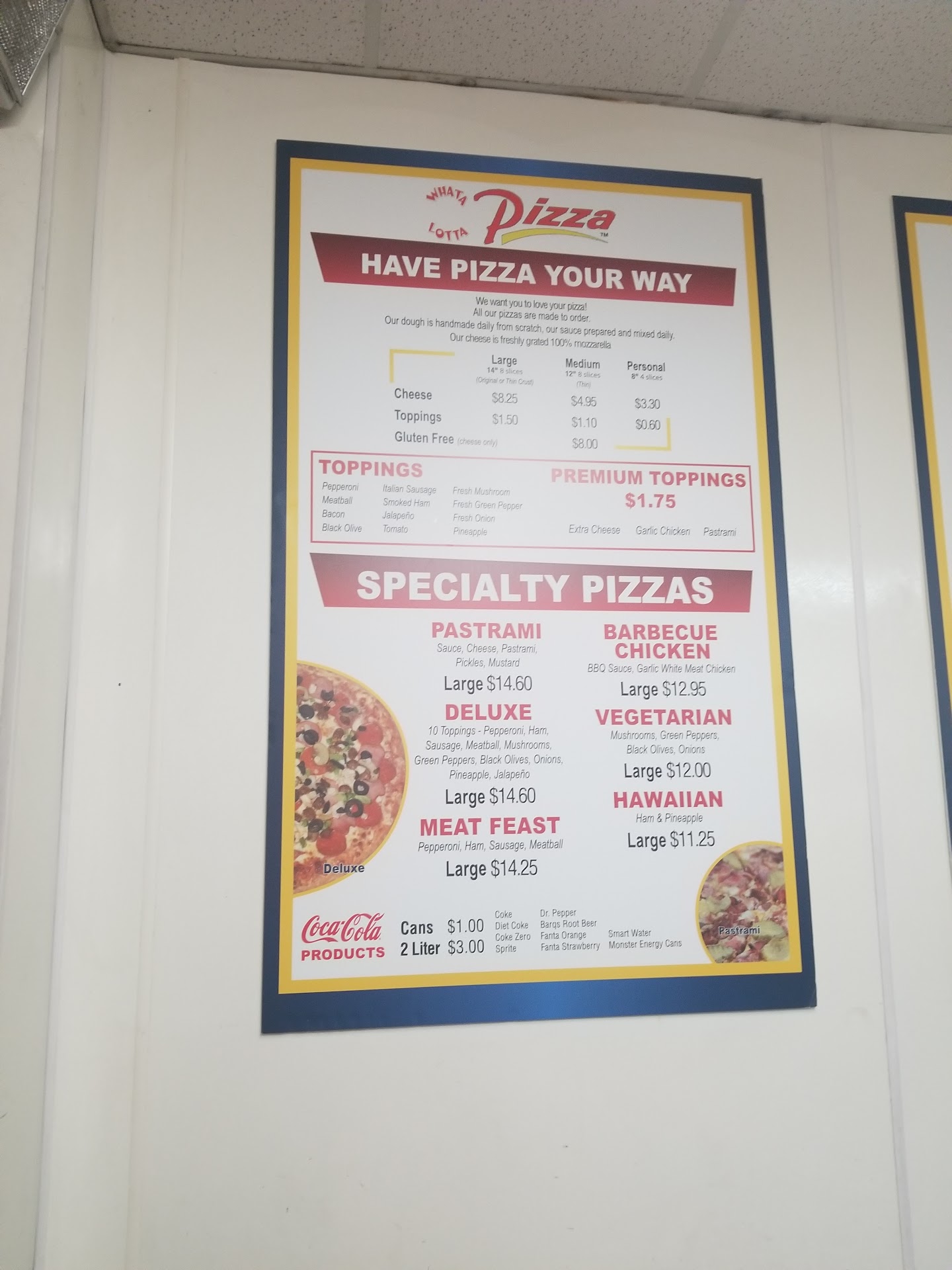 Read moreThis pizza is inexpensive, but delicious. Yes, there are fancier pizzas out there for sure, but sometimes you just want something that's freaking tasty and Whata Lotta doesn't disappoint. Our go-to is extra cheese and half pepperoni. If you're looking for a pizza that will give you one epic cheese pull, this is it! Not gonna lie, I have had some experiences where there was too much cheese and the dough ended up being undercooked underneath, but since it wasn't a $30 pizza like you'll get from Round Table or whatever, it didn't totally...