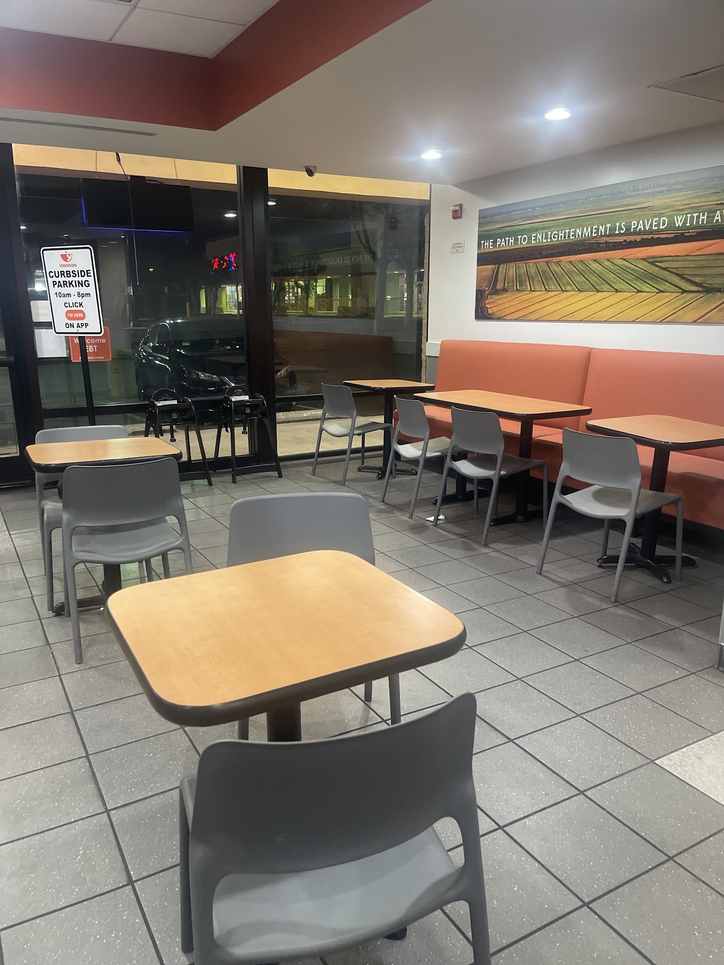 Checked Google Maps at 10:15 what time this place closes. 11:00 is the time it closes. I had to hurry as it, "closes soon." Coming from the other side of Orange with only 45 minutes until close meant that waiting for the bus or a ride from a friend are options that I couldn't consider - my only viable choice of transportation that I could afford at the moment was either of the two major ride share operators in the area. Uber was 20 cents less expensive and a driver was two minutes closer to pick me up, so I ordered our ride. About 15 minutes later as we were stepping out of the ride, I looked up to check out my surroundings because the area felt like it was rather dim... My observation was confirmed when I saw the colorless silhouette of the Yoshinoya sign. The signage outside was not lit up and the lights inside were turned down low in the patron-less dining room. "Maybe the lights are on a timer and haven't come on yet," I said with uncertainty as I made my way from the car to the door of the restaurant. I reached out and grabbed the handle of the door as I stopped in my tracks and took a deep breath. Pausing for a moment to try and manifest my desired outcome from trying to open that door. I pictured myself pulling open the door and being met with a rush of warm, inviting air from the inside warming my face. My slightly frozen nose and ears melted into inviting warmth of the indoors reminding me of how chilly it has been lately. The familiar scent of a meal I had been looking forward to with anticipation during the entire ride to the restaurant greating my olfactory receptors all dissipated and vanished harshly back into my imagination as my body jolted into the same position it was in just a moment earlier when my hand felt the resistance of a locked door and the sudden transference of my kinetic energy into an immoveable object. It was like accidentally running into a shut sliding glass for. All my dreams of a decent meal wiping away the hunger from my gut shattered into the harsh reality of the situation just as suddenly as my attempt to go inside to eat was thwarted by that locked door. Normally, I would be at home at this hour pondering what type of bare bones meal I could piece together from my emaciated cupboards and refrigerator. Tonight was different however because I had just gotten a little bit of extra money deposited into my Cash App from winning a little bit at this online casino I sometimes will sink a few bucks into on my lunch break. So imagine my chagrin when I realized a large portion of my winnings were just wasted on a ride to somewhere I no longer had any reason to be. With more of the winnings at risk of being lost to having to pay for the return passage from our meal uneaten and unserved. Now even though I had the extra money for the meal, I still would have to figure out how to get there. This was not the intended outcome of my trip to Yoshinoya tonight. And all of this because of what? Because the wrong hours of operation are still posted online. So while this place should be better than one star, all they are getting from me is a single star. I do not know how they can fix this in my eyes. Because that money I spent is never coming back and I doubt it's in the budget for them to replace those funds or pay for my ride at a time when they are open. So, one star. Finish...