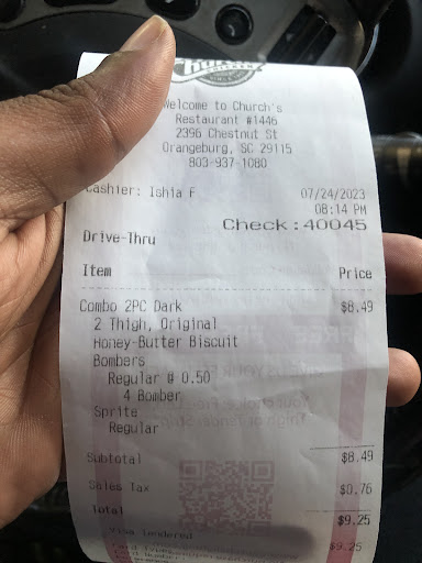 Read moreThis is one of the last remaining Church's restaurants in South Carolina. I have a deep appreciation for the unique flavor and quality of their food. While this establishment consistently serves delicious meals, it's essential to note that its physical appearance has seen better days. The signage on the storefront is missing, and the drive-thru features a challenging and sharp curve that can be tricky to navigate.