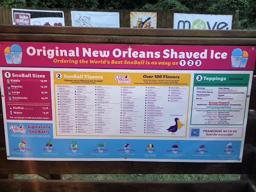 First visit. Snow Cones were so refreshing on this very hot day. I had the Coconut & my husband had the Orange Pineapple. There are soooo many flavors & combinations you can get. Ours were delicious. They are very generous with the portions. A regular size was a little too much for me. Might get the Kiddie Size next time. The site is comfortable & welcoming. It has a ramp which is great access for all. Several tables with umbrellas are scattered in front to sit & enjoy your snow cone.I love the happy colors & the pelican decor. So cute. Nice place to take the family. Was about$ $7.00 for the 2 regular size snowball cups. I don't think...