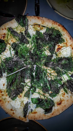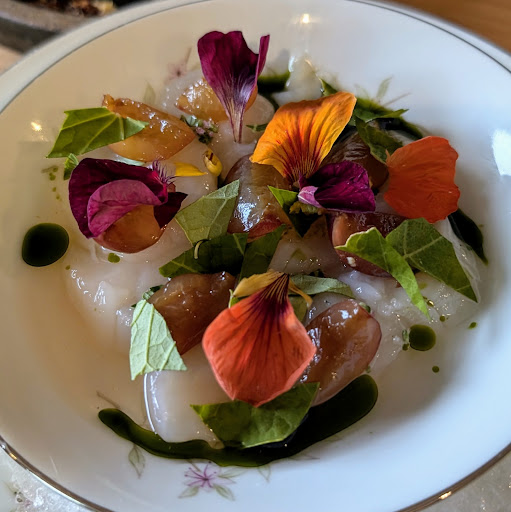 Read moreI did enjoy our dinner here but was a tad let down by the flavors. The staff was super friendly and the environment was cozy (could have been a little warmer but I get cold easily). It's super fun to watch the chefs prepare and cook everything. The pizza was fine, dough was tasty but lacking in flavor, could have been crispier as well. Wasn't wowed by the toppings either. Some of the other dishes we got were scallops (sauce was the best part, scallops were fresh but not seasoned enough) & mushrooms (good, probably my favorite dish, the broth was very yummy & complex). The dessert was this apple caramel with a brown butter ice cream - caramel was delicious, made me feel like I was eating a candy apple but a bit too hard. The ice cream just tasted like sweet cream to me, didn't get the brown butter but the texture was on point.