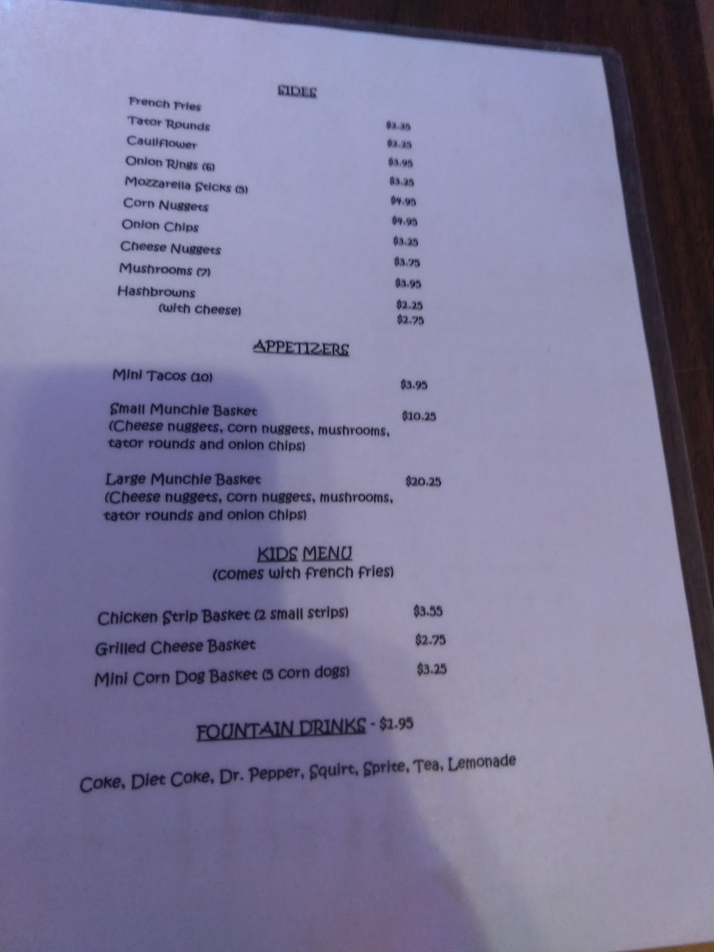Read moreThis place was great. extreamly friendly owners. It's like going to your Grandmas. sure the decor is a little out of date. However food wise, your not walking away hungry. Ate their special burger, the name escapes me. It was great, a good seasoned patty, with egg, and bacon on a garlic bread bun. Add in the corn nuggets, and your an extreamly satfied customer. Overall I...