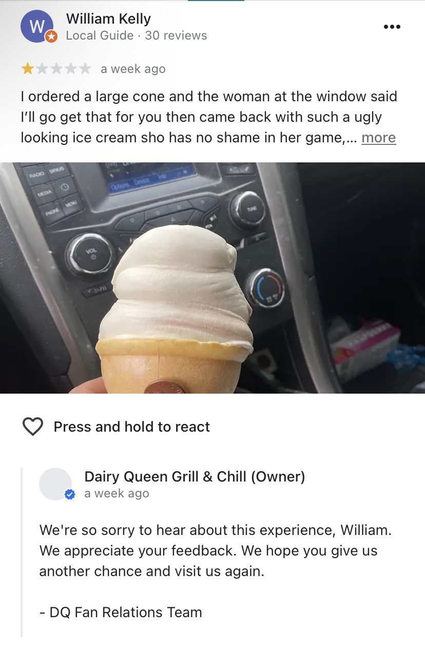 My 8 year old noticed all the issues and as we pulled away he said “that was the worst Dairy Queen ever”. He talked about it the whole ride home. He even came up with an acronym WDQE. So now he calls the Oregon City DQ “WDQE” (Worst Dairy Queen Ever).