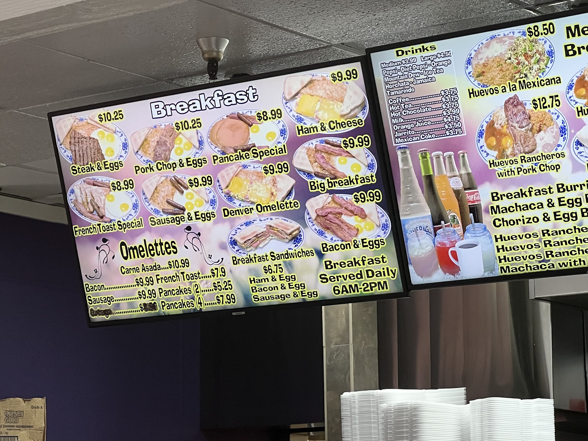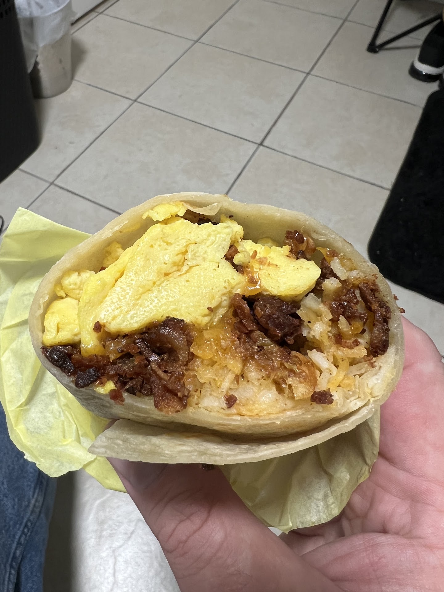 Read moreI first looked them up online. Clicked on their website and looked at the menu. Their menu says the breakfast burrito is $5.70. But once I arrived in the store their menu says it was $8.25. This is not cool since this price was part of my decision making on coming into this establishment to begin with. I told the lady at the counter that the price online was way cheaper. She claims it is an old menu. Fine but change that. It’s your website and your duty to due so. I went ahead and got the bacon breakfast burrito anyhow since I was there already and hungry. This was the worst breakfast burrito I have ever had. It appears that they use bacon bits and they are burnt so bad it’s like biting into rocks. It hurt my teeth biting into this burrito. I threw it away, and have no interest going back ever. They used to be good, not anymore. Prices are inflated and quality has...