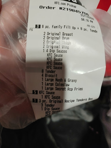 Read moreThis is the third time in about a month and a half that I have been there. I have still not been given a correct order. If they can't sufficiently staff this restaurant they need to close. KFC has gone up drastically in their price, which I understand, but not getting the order correct is not acceptable. The manager that was working wasn't the mgr. from that store and he was running around "yelling" at the employees. They had a couple of workers call in "sick". I felt sorry for the gal at the window but she was clueless as to how to satisfy her customers. I think a lot of training is needed here! Hoping they can get their act together soon, it's my last time there until I know rget have...