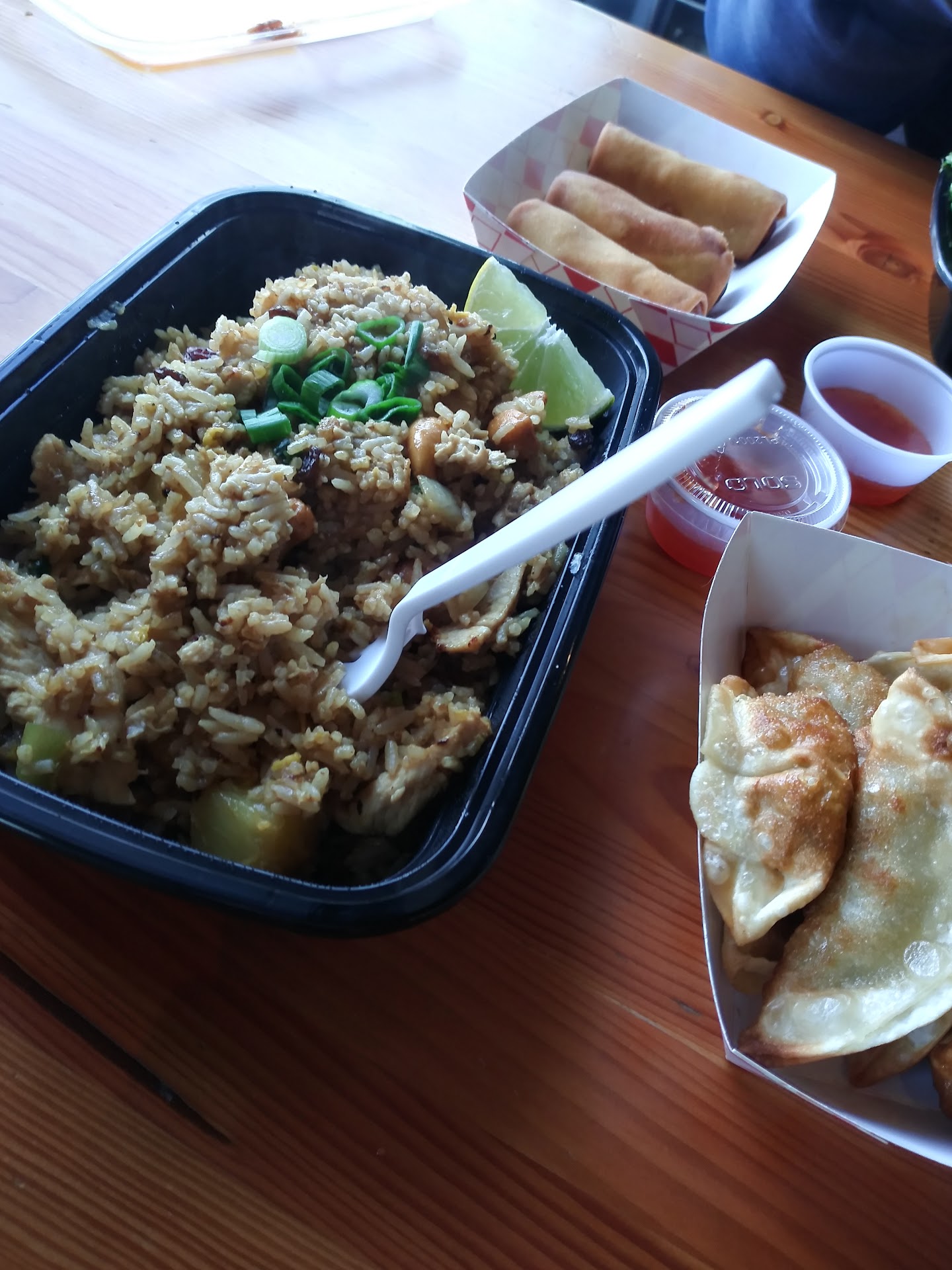 My husband and I stopped here for lunch on a Saturday. There was a bit of a wait, but it was worth it. I got pineapple fried rice with chicken, my husband got a spicy peanut chicken dish. We also got the egg rolls and pot stickers. The portions were generous, flavor and quality top notch! The cashews in my rice were large and so delicious! Personally, I thought the egg rolls were not the greatest, but my husband and daughter...