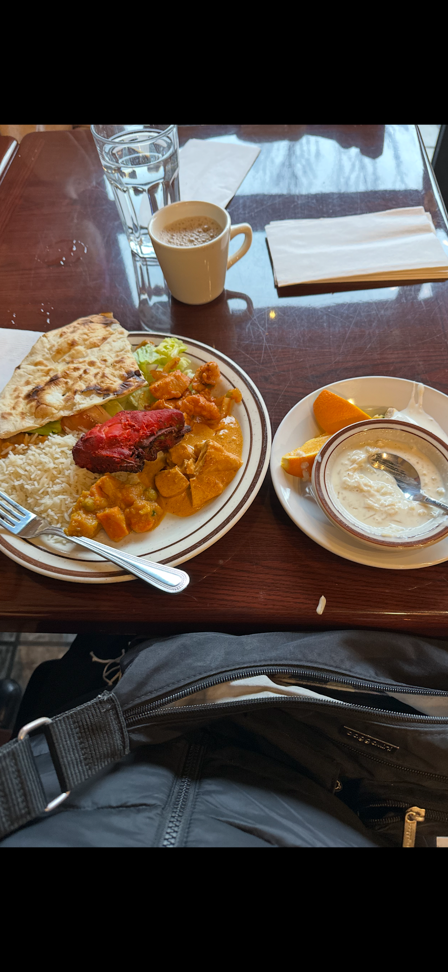 I ordered the veggie samosas with their tamarind chutney (OMG!) SO DELICIOUS! I love tamarind chutney & theirs is excellent. I also ordered the Tandoori chicken which came out sizzling hot & smelled so incredible. Chicken was moist, so flavorful with a side of some sort of curry. It went so well piled on top of the garlic naan—just excellent as well! My friend ordered the Chicken coconut Korma that I ended up absolutely loving! And the spinach pakora which was a delightful bite! The portions were big enough for 3-4 people so we took home leftovers. This morning, my pregnant butt ate Indian leftovers in bed for breakfast. I could not wait to dig into in the next day!