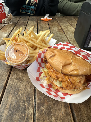Read moreBusy Sat night, Family ordered a fried chicken sammy, Double smashburger and Strips & fries for the kids. The chicken sandwich (bun, chicken, and sauce) was way too salty. We like RR's fries and this was almost inedible. Smashburger was fine and onion rings were fine. Strips were again too salty. Neither the Toddler or 5 year old touched them. Portion size was fine. Recommendations: tone down the salt, add a slaw and cheese to the chicken sandwich (or greens), smashburger could use onions, pickles, and maybe...