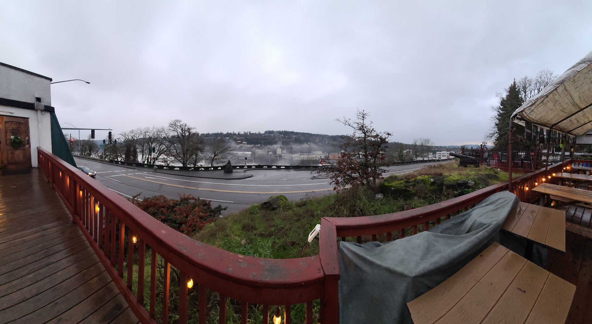 This place has two entrances - one is at the corner of the building at the intersection with the traffic light, and the other you walk up a wooden ramp past their balcony seating and to a door on the second floor (the building is kind of at the edge of a hill, it'll make sense once you see it). Friend and I went into the first floor entrance, which seems to be the minors-acceptable space. The person who greeted us kind of ushered us upstairs immediately, which is where the minors-not-allowed space is. From what I saw of the downstairs, it feels like a pretty traditional pub, with some good natural light from street-facing windows.