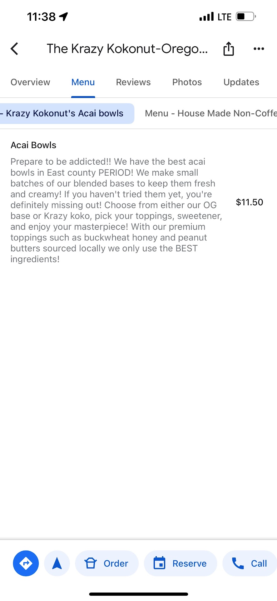 I ordered the The Krazy Koko, and it was bursting with flavor. The acai was perfectly blended, not too sweet, and topped with a generous amount of fresh fruit, granola, and a drizzle of honey. The toppings were super fresh, and the portion size was more than enough to leave me feeling satisfied.