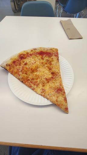 Fast service and massive slices for college-inflated prices. It's an expensive slice, but when it's the only one around you are more than willing to shell out for the humongous portions. It tastes amazing without too much oil, which is good, but it's only open for a short while each day and has more than enough seating to go around. They also offer canned sodas and garlic knots. They also take tap-to-pay...
