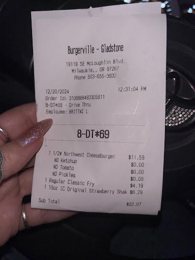Ā Ā Ā Read moreāāāāāUPDATED TO REFLECT AN INCREDIBLE AND UNIQUE EXPERIENCE 06.20.2022 Last week I stopped by at about a quarter after 11:00 am and picked up a good old-fashioned Burgerville cheeseburger. It was one of THE BEST, if not THE BEST fast food cheeseburger ever! It was cooked to perfection: nice & juicy and it actually had a lovely flavor and texture. Many times fast food burgers are overcooked and dry so I end up avoiding it, for good reason. Gladstone Burgerville has earned my 5āstar review! UPDATE: I was out and about and gave in to my craving for another š cheeseburger.. I am delighted with my experience this morning. I have kudos to the team for the exceptional experience I have last week. When I pulled up to pay for my order in the drive-thru, I was short 25Ā¢, the cost of the water I ordered. I fumbled around looking for an extra quarter but unable to find one, embarrassed I asked the cashier, Oliver, to remove the water from my order. Without missing a beat Oliver pulled out a personal debit /credit card and paid for my water! I am continually reminded of the love and kindness, respect and humanity in our communities. I hope to always hold this memory to lift me up on dark days or on those occasions when I begin to lose my faith in humanity. Oliver is an exceptional example of beauty and kindness and not judging me or having any ill will or attitude or looking down on me for not being prepared or lack of funds. Thank you Oliver! May you be...