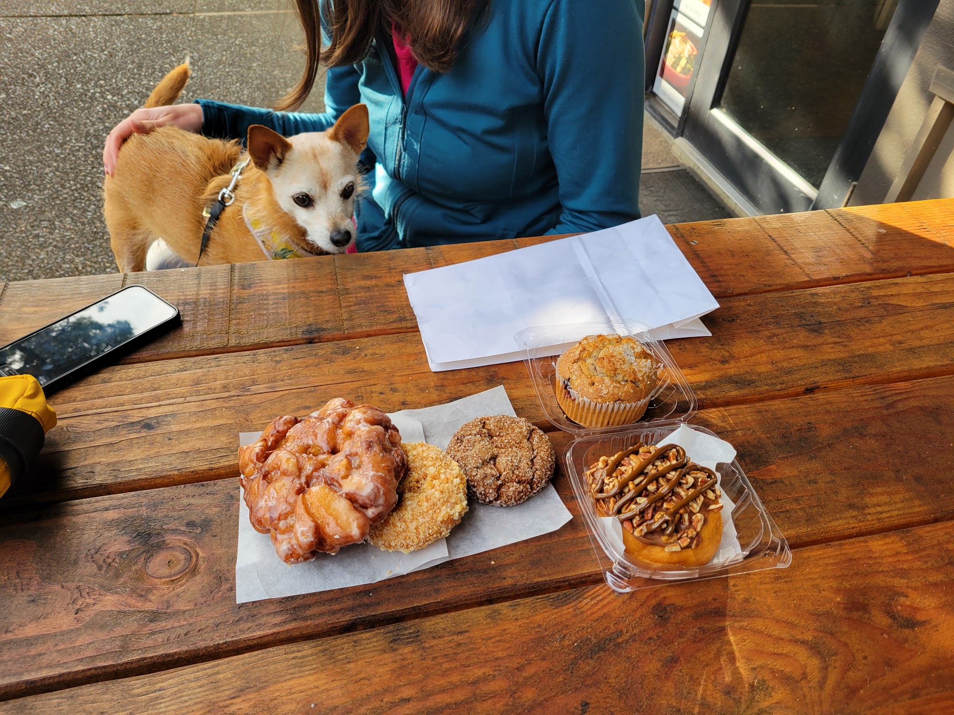Read moreOver the years my wife and I have stopped in here several times. I do not know if we are experiencing a phenomena due to the current pandemic situation; but, it seems recently that people working in the food, beverage & hospitality industries are no longer concerned about customer service, the quality of their product/service or being friendly with customers. Usually, there is a man and woman (a couple) who work there (I believe they are the owners) and they are usually friendly and the quality of the bakery items are really good. This time, there were two women working; and neither were very friendly. The one who was getting the items we asked for from the display cases could have sold us more items if she had been remotely interested in being there. But, I don't think she wanted to be there either. The selection was limited when we went in during the late morning hours; and one of the items I purchased was a bag of coconut cookies. The edge of the cookies were pretty crispy, which I doubt was intentional, but they tasted okay. I would have bought some peanut butter cookies, but the tops of the cookies were blackened from what appeared to be baking them too long and/or too hot of heat. I also tried a sugar/cinnamon coated marionberry fritter and my wife got a marionberry fritter without the sugar/cinnamon coating. My recommendation is do not get their fritters with the sugar/cinnamon coating. They are drier and do not have as much flavor as a traditional glazed fritter. Cookies weren't that good this time either. My wife also got a sailor jerry and it was okay, but not as good as other bakeries. So, even though in the past we have stopped here several times and got great pastries and a friendly chat with the proprietors, this time it was...
