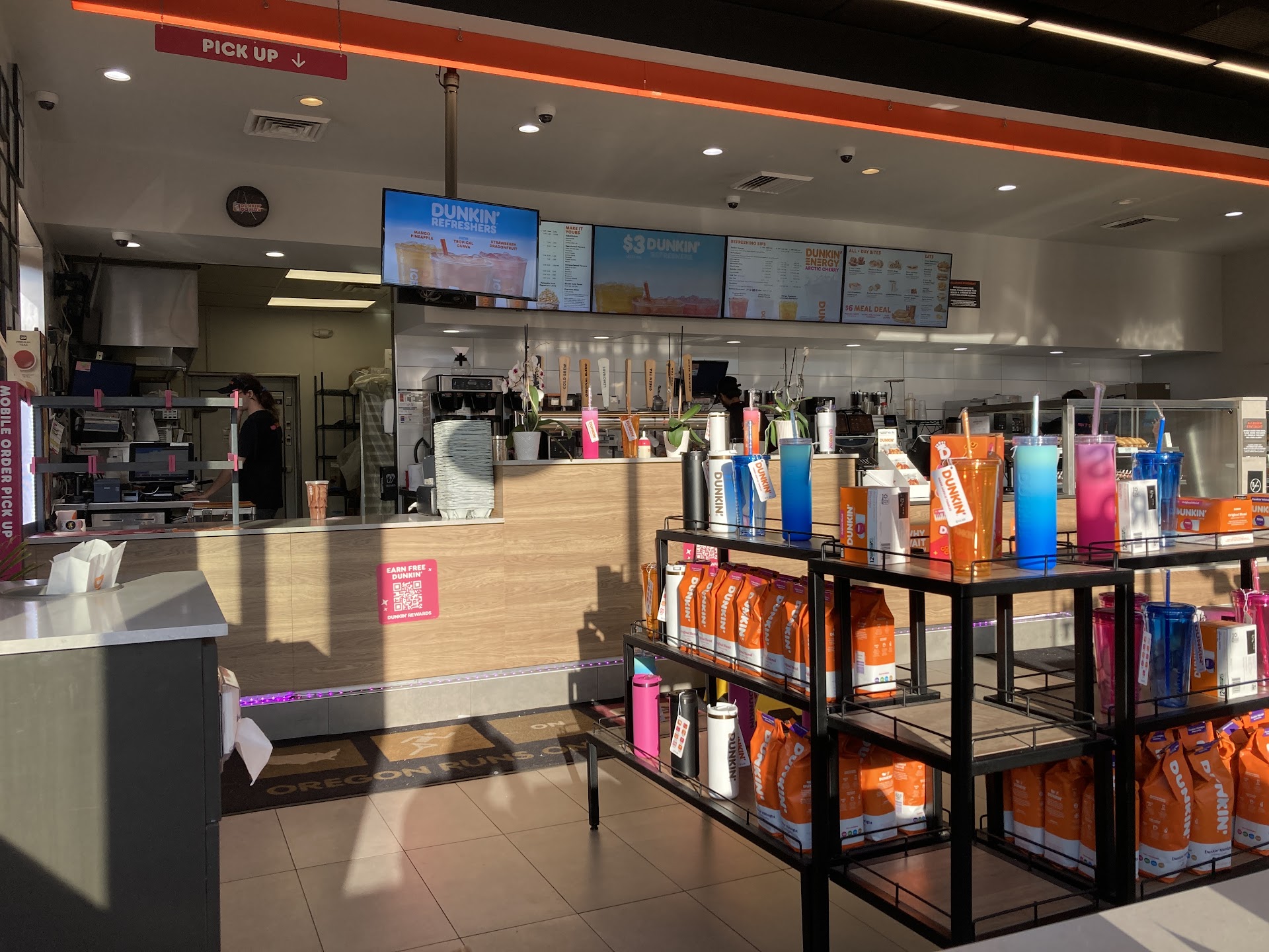 The inside is clean and well kept, loved the seating, they even have multiple wireless charging booths on each of the tables! I wish we could've sat a bit longer. I was impressed/not expecting all this from a Dunkin, this will be a regular stop for us when we are...