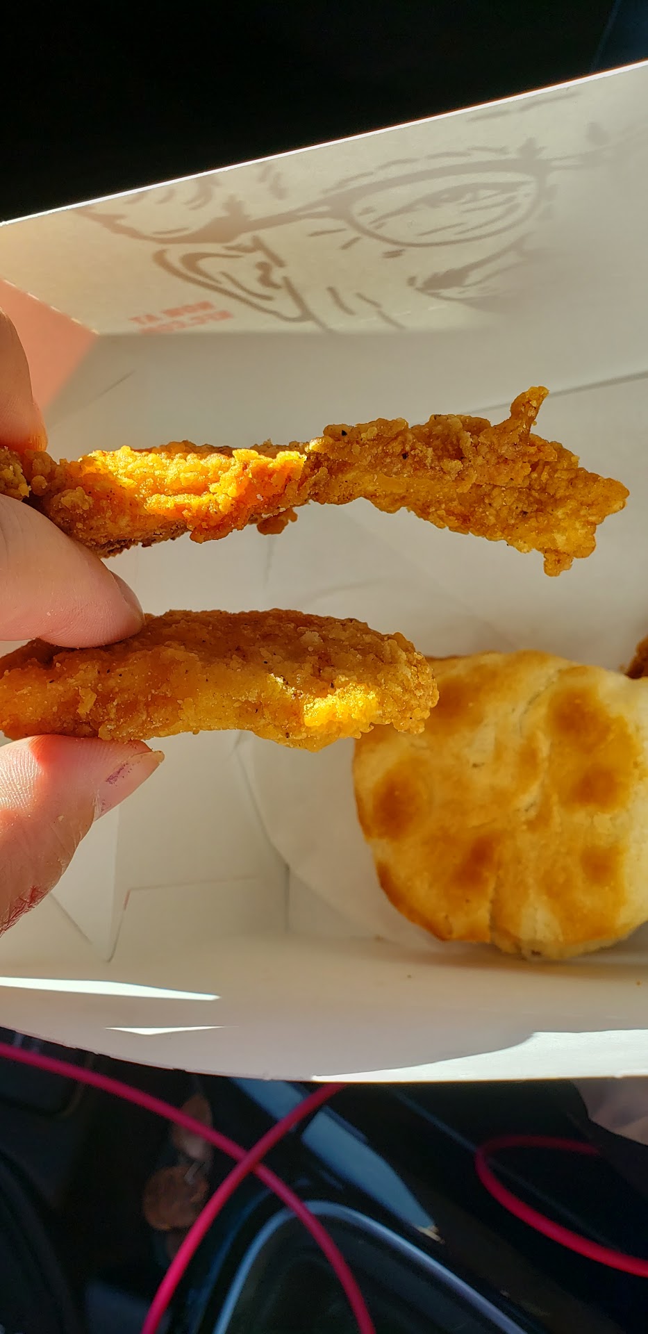 Read moreTonight was a bust! The chicken was disgusting!! I’m not sure if they over cooked it or if it was old, but yuck!!! I ordered extra crispy skin and it was extra crispy all right, it was so crispy, I couldn’t get my teeth to go through it. The inside was dry and pliable. The mashed potatoes and gravy were good they tasted normal to my kids and myself. Also the biscuits were good but I wasn’t given butter or honey so that kinda sucked. The one great thing, well at the time I thought it was a great thing, was the cashier gave me a coupon because it said 19.99 on the menu for a family meal, 29.99 if u want tenders insted of chicken, but what that meant, as she explained at the windo was it’s 29.99 for the meal. Ummm…. Then why does it say 19.99 and 29.99 with tenders?” I don’t know Miss but it 29.99. I said no, I’ll just get the 19.99 deal, chicken only I guess. She said well I have a coupon so it’s 23.99. I said “I’ll take it”, “thank you”. Which would have been wonderful but the fact is the chicken was disgusting and there was no butter honey so ultimately I consider this night a bust. Honestly I don’t eat at this location in Ontario Oregon, very often so I’m not sure if this is the way it always is I can only give you my experience as of tonight and let you know I will not be coming back. And I gave it a 2 because she gave me a coupon otherwise it would...