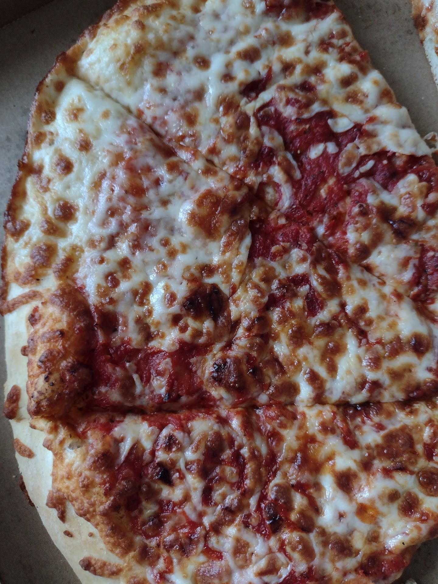 My wife and I had family over and ordered four pizzas. Two were cheese, one was pepperoni, and another sausage. All were supposed to have garlic butter crust. We picked up the pizzas, came home and opened them to find that the first cheese pizza wasn't even cut. We also discovered there was barely any cheese on the cheese pizzas. Cutting the uncut pizza was rough because the crust wasn't fully cooked. The sausage on the sausage pizza had no flavor. No spicy flavor added, or just a cheap bland kind of cut up sausage. We wondered if they used a cheap version of turkey sausage, not sure. The worst came when not one of the pizzas had the garlic better crust. None of them did when all should have had it. When I called the order in it seemed the one taking the order had trouble taking it. When I picked it up, we could not be found in their computer, but was entered with my first name and phone number. The one going over my order read back incorrect pizzas but then went over it again and read it right, except she did not mention the garlic butter crust. I asked "I asked for garlic butter crust on all of them. Is that in there? She nodded yes.