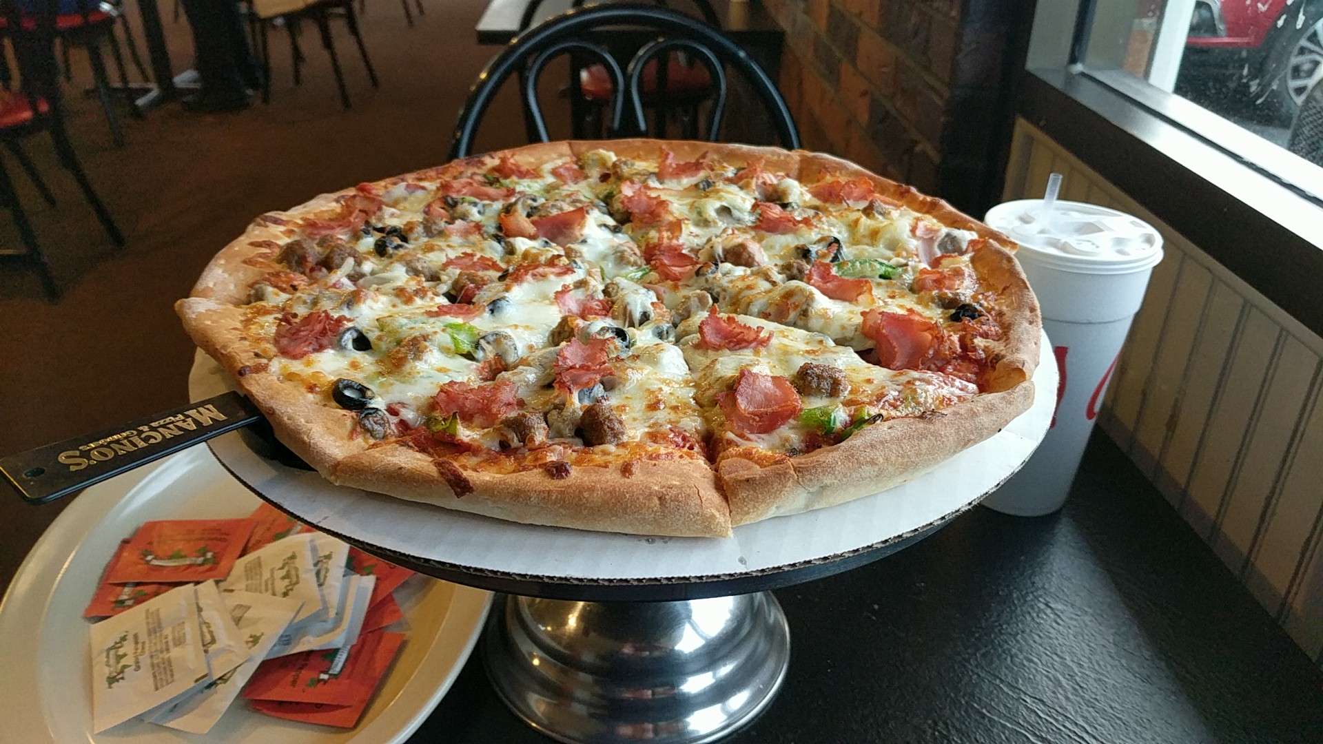 Read more6 mos ago I would have given a 5 stars but tonight's experience was not the greatest. Service- had to ask 3 times for plates, as we were not given plates at purchase, like usual. We ordered a lg pizza half mushroom sausage half pepperoni banana pepper. Pizza came out with no banana peppers. Product-Crust and cheese were different on pizza. Significantly less cheese on pizza and crust was much thinner than usual. Dining area was not clean, we had to wipe off our own table to find a clean one. This was probably just a busy night for them, but our family was really looking forward to the great Mancino's pizza we have loved in the past. It just didn't live up to past experience. Hoping to catch them on a better...