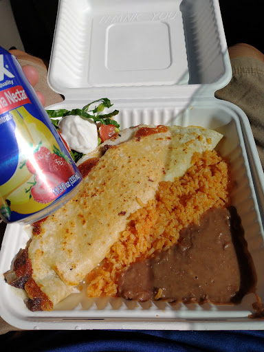 Ordered here thinking not so many people so food should be done faster well wrong waited 25min. A man next to us complaining also about the wait and would rather leave without food but had already paid. Proceeded to leave with food in hand. When we got to our destination began to eat a carne asada burrito with beans rice Lettuces tomatoes onions jalapenos and guacamole. Thinking super good until I gave it a bite and get a not pleasant taste of hard pieces of fat thru out the burrito. The green salsa was way to spicy with no flavor for my liking and the red salsa seem to be tomatoe sauce. They were friendly...