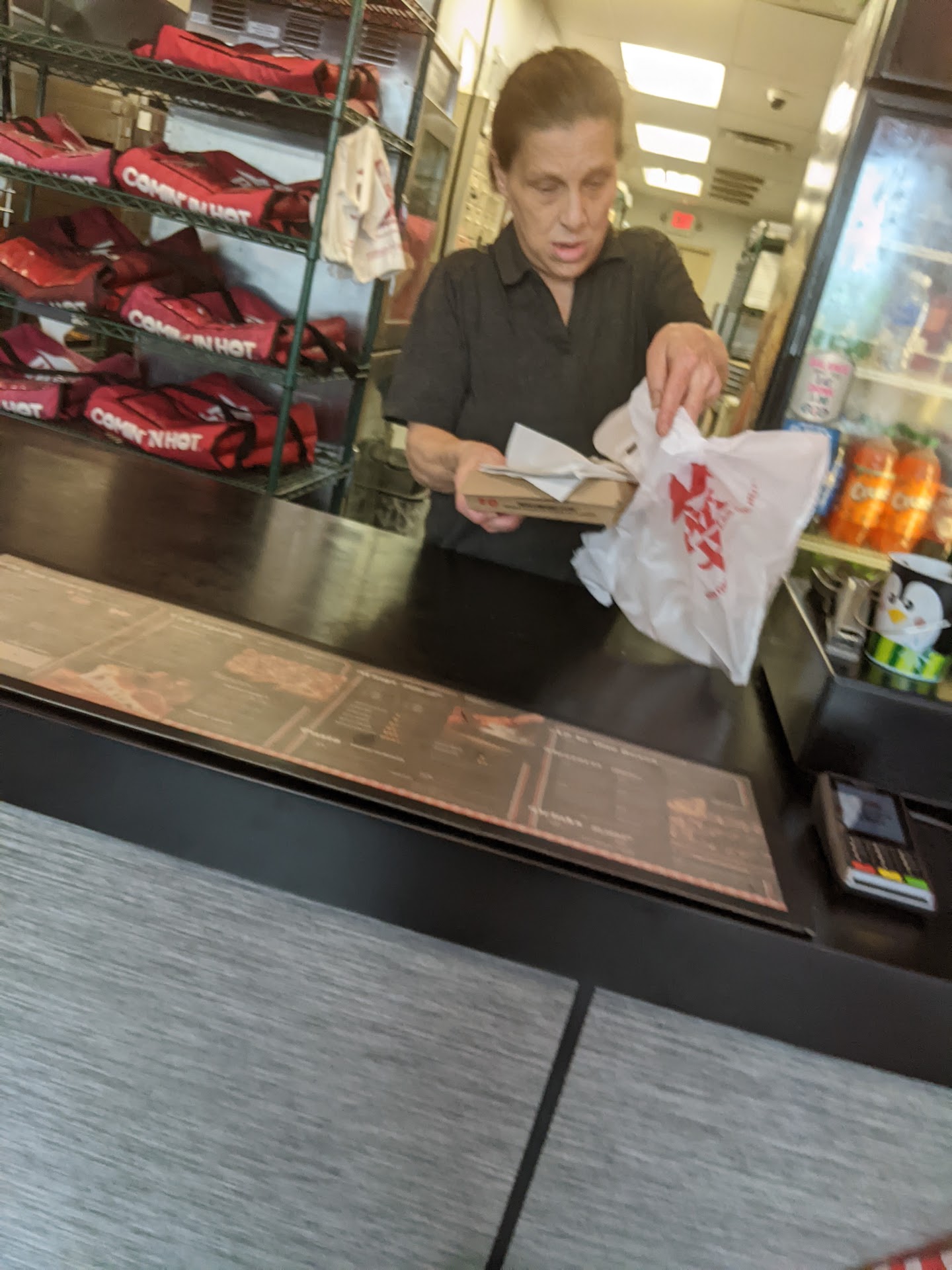 Read moreThought we'd stop and order a pizza to take home. The door was locked! It couldn't be a Covid thing because none of the employees had a mask on. (Not that I cared about the mask stuff). We had to call in to a call center out west, in which our operator had a hard time speaking English and had trouble understanding English. The operator didn't give us a total and didn't tell us how we would get our pizza. We had to wait to see how other people were getting their orders. The personnel at the store was very nice and came out and asked us what order we were there for. They said it would be out shortly. The girl was very pleasant. She came back with our hot Pizza's and gave us our total. Pizza's were ok when we got home, but I will never recommend the Cinnamon Rolls. They weren't cooked all the way and just tasted yucky! Overall, my experience with the operator was enough to not order over the phone again. If I can't walk in, use the app or contact the store directly I won't...