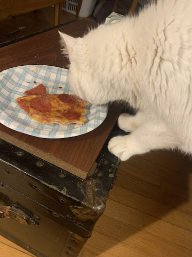 Mr. White the pizza is amazing and brought back some great memories to share, well with my cat tonight her name is Snowball, she is 17 years old. Everyone was sleeping so this was her time to be an opportunist. She took over the slice! May I add sheās a picky eater just the smell from the oven got her going.