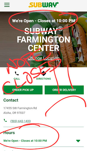 Read moreI am a neighborhood customer and since this place has been established, I unfortunately have had too many unacceptable experiences with this location due to the lack of customer service and time. I was just there tonight went through the drive thru and the representative asked for my order. One foot long multi-grain, lettuce tomato and turkey and toasted, that's when the employee said I will be right back I am going to toast it, a minute later she proceeded with the toppings. Well,once I got to the payment window another lady asked me if they have taken my total, after all was done and said I got the sandwich without napkins or a receipt. I had to ask for one which was a duplicate. Ten minutes from where I live I opened the sandwich and it was not toasted. I don't understand why she had me wait for a minute and supposedly toasted the sandwich. I called and when I expressed my concern the lady on the phone said would you like to come back so we can toast it? seriously what is going on with customer service not even an apology and holding themselves accountable. Like I said unfortunately I have had other bad experiences and lousy customer service and I will not go...