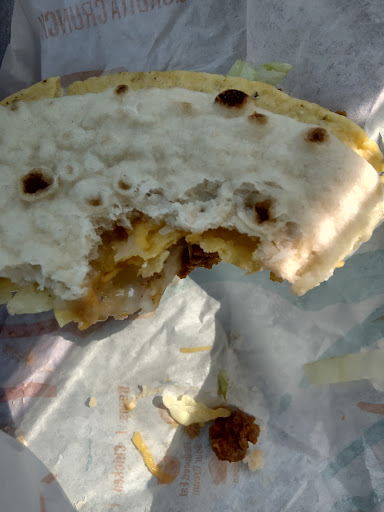 Read moreWhere do I start? I came here after the Wendy’s employee right across the parking lot told me not to come in because he was taking his break from taking his break. I ordered two stackers, not a hard ask. I’m usually a fan of the stackers, but today they should’ve been called slackers cause they were slacking harder than the Wendy’s employee who was smoking a scooby doobie doo a few yards away. I pulled this bad boy out of the wrapper expecting heavenly tortillaness. I took a bite and let me tell you, it was more frozen than my credit card after I tried to stop accumulating debt. The cheese was COLD bro. I even had my two buddies put two fingers on it like they were trying to find a pulse, but this thing was dead stone cold frozen. I hope Taco Bell pays for my dental bill when I tell them I had to get an implant from the tooth I lost after biting down on this wannabe Mexican horse meat style poor excuse for a quesadilla. One of my friends, who use to work at Taco Bell went up and asked if they could steam it or make me a new one. This lady popped out and said no and didn’t offer anything else. Idk how this woman was still alive dude, I swear she was 253 years old and pretty sure she lived among the dinosaurs when they roamed the earth. She looked familiar and I finally realized she was the old lady that gave kenai his totem in brother bear. When she spoke, dust came out of her mouth along with the stench of an antique shop mixed with vegetable oil. Needless to say, I had to force myself to eat about 2 pounds of frozen shredded cheese and a lukewarm tortilla. I hope when the judgement day comes, these people get justice for the crime they...