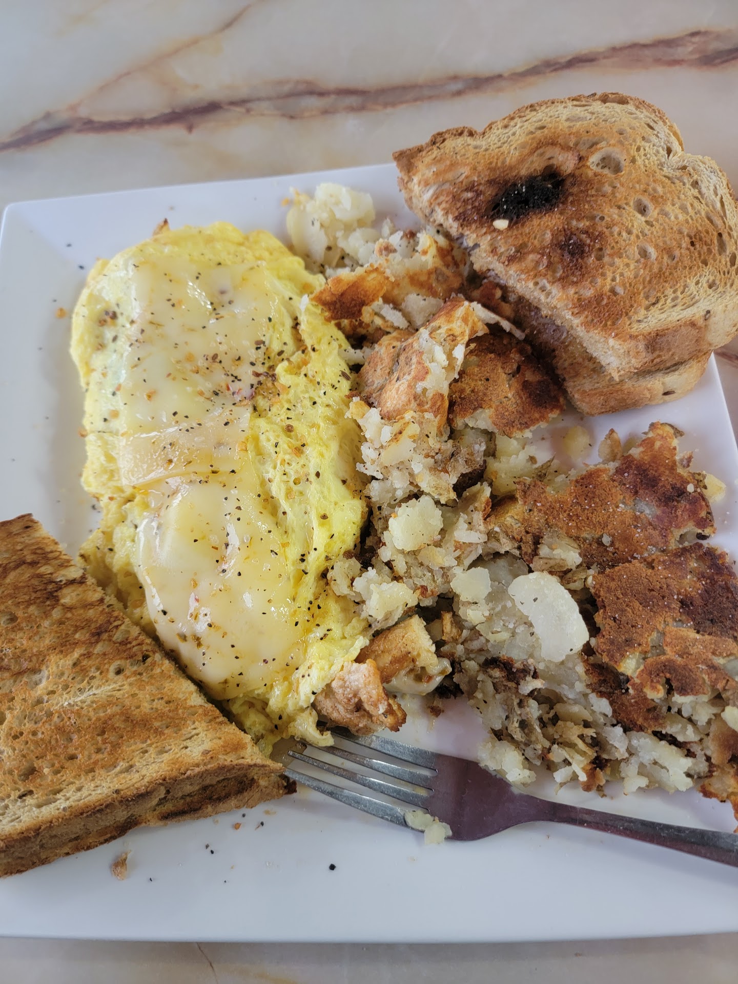 My wife and I eat here fairly often and are usually pretty satisfied. The bacon usually tastes like it was cooked the day before and the breakfast ham is much too thin, so thin that it has no taste. It used to be much thicker and tastier, But today I went in for breakfast and it was terrible. I ordered the breakfast special and after a considerable wait I received my food MINUS...no utensils, no napkins, No potatoes, burnt toast and the waitress asked if everything looks OK. I sent the toast back and a few minutes later she returned with what I am sure was the same toast so I sent that back and and asked for thicker toast. When she brought that she asked if I needed anything else and I said utensils, napkins, and my potatoes would be nice but by the time I received that my eggs and bacon was cold. After I finished eating I waited for approximately 10 min.for my bill but it never came. When I got to the register to pay, the young waitress was standing there and she said "Oh I'm sorry, but I was just getting ready to bring it to you. Now, I understand sometimes waiters/ waitresses are having a hard day but this was terrible, almost comical. Of course I thanked her and left, but I was extremely disappointed to say the least. Might be a while before we go back! This...