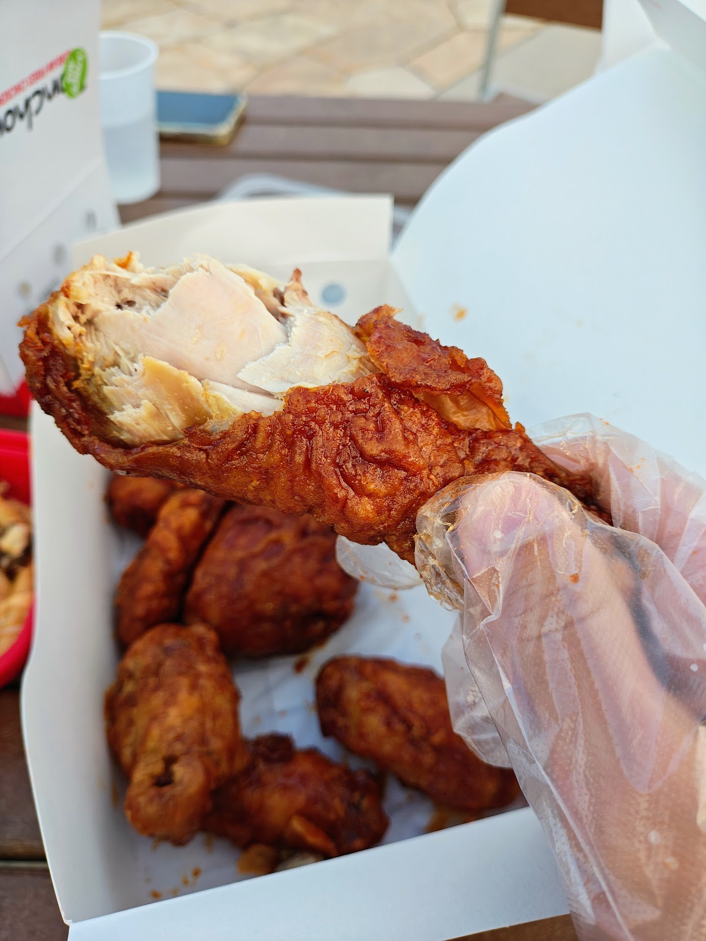 Read moreKorean not approved. The mixed chicken pieces with bones were way too big and thick and didn't have enough sauce for the amount of chicken. You taste the sauce when you eat the skin part, but you don't taste anything but tough chicken. Authentic Korean BBQ places have enough sauce in the box so that you can still dip the chicken in. For the bone in chicken they need to use smaller size chickens to make sure people don't eat just chicken without sauce or provide more sauce on the side. Bigger chicken doesn't mean better. The chicken and sauce ratio needs to be right. My wife purchased the boneless strips, paid $8.99 for a 6 pc and ended up being served 6 small nuggets (McDonald's nuggets are bigger) that weren't even fully coated in sauce. Very disappointed. Don't waste your money, there are other Korean chicken places (chicken in the kitchen, Sushi 38, and BB.q chicken) that do a better job at replicating Korean fried chicken.