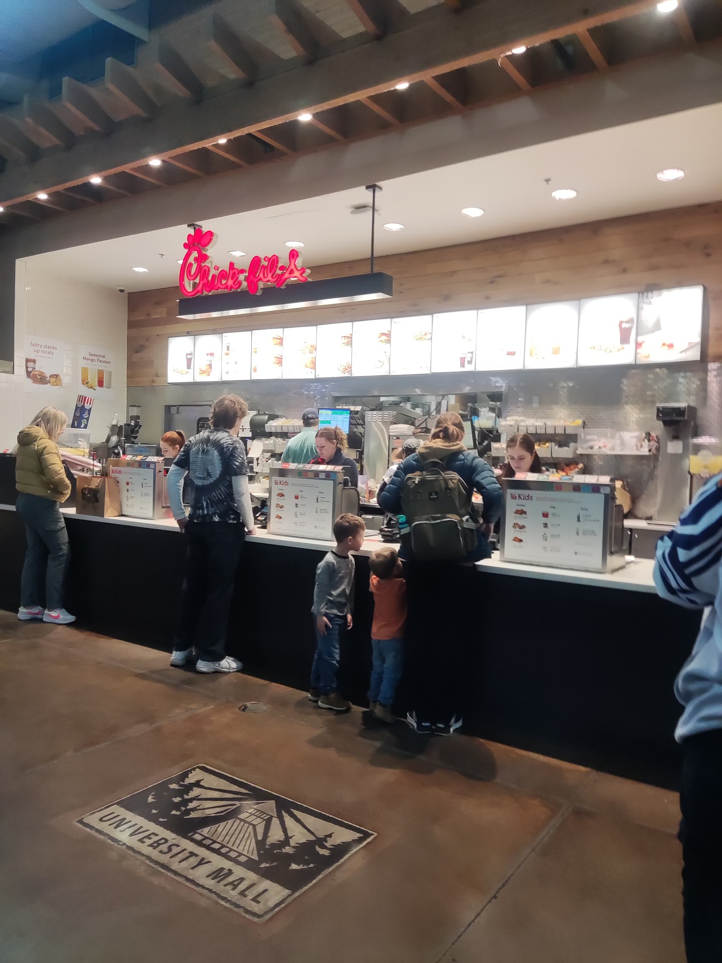 Read moreI normally love chick fi la and normally would recommend any location but this was a baffling experience. This location is in the mall so they close at 9. We placed our order at 8:33 and we're surprised to see that they were cleaning up to close already. The cashier who helped us was at work, but clearly already clocked out for the day and was extremely rude and took our order in a hurry, not allowing me to finish. Then they spent the entire time focusing on closing as opposed to finishing the orders they had already gotten prior to ours and continued to get. I've never had to wait more than 10 mins for food at chick fi la, and that's probably a gross exaggeration, it's usually only 5 mins. But I didn't get my order until 9. I finally asked about it at 8:58 thinking they had some how lost it and one employee was very apologetic which I appreciate. But I'm incredibly annoyed by how desperate they were to get out of there when they hadn't even closed yet! The cherry on top was cold, tiny fries and...