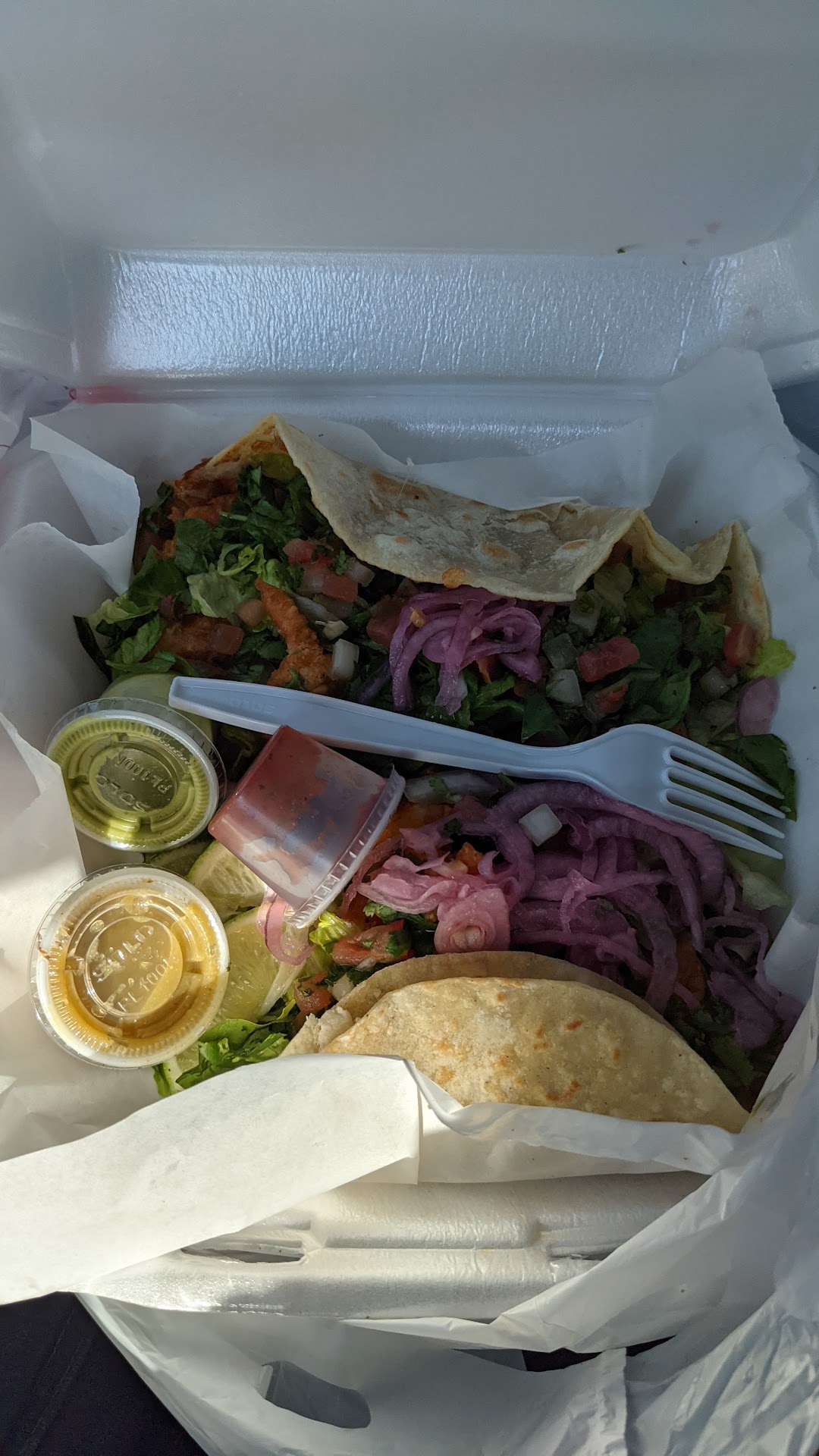 Read moreThe street tacos look a little pricey at $3 each, but with two tortillas and a large serving of meat, you're pretty much getting two street tacos for that price. The steak was little dry for my liking, but the Al Pastor was really good. The shrimp tacos were good too, but a little more expensive at $5 each. The sushi rolls weren't worth it for me. If you like Utah Sushi (plain rice, not much fish flavor, lots of creamy mayo/cheese and sauce) then you'll probably enjoy it, but they're definitely expensive at ~$15 each. For that price you could get a fancy sushi roll at a upscale sushi place. For food and price alone, 3 stars. If everything was $1 cheaper it would probably be 4 stars for their tacos alone. However, I have to remove one star due to their safety standards. They have social distancing measures in place with a spaced out queue and closed off tables, but the employees don't wear masks. They have a screen in front of the register, but still come out to serve you your food at the table. I know masks aren't required by law in the area, but it's still a good idea for public safety especially for food...