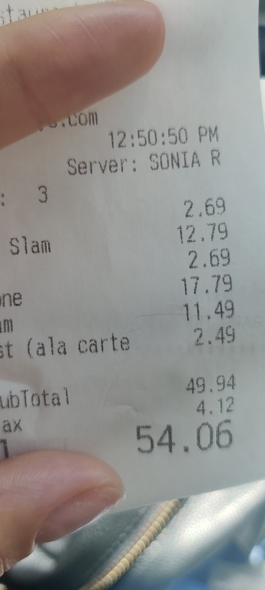 Terrible experience. We had a party of 12. The restaurant was not busy. We wanted to wait to be sat to double check the number of people that would be joining us but the man up front rushed us into a table anyways. No biggie we chatted while we waited for the rest of our party. The 5 of us ordered drinks that came out about 15-20 minutes later. By then the rest of the group had joined and also order their drinks which also came out about 15-20 minutes later. Our waitress refilled our drinks one time after waiting forever for a refill. The appetizer came out with the entrees and 2 of the grandslamwiches we ordered came out as a grand slam meal. That’s an easy mistake and my friend and I patiently waited for them to remake our food only for our waitress to bring out burgers instead after everyone else at the table had finished eating. We were tired and hungry so we ate the burgers instead. Waitress did offer me a free dessert but I would’ve just preferred my correct order. She told me that issue was that the kitchen didn’t speak any English and there was nothing she could do. We asked for the check to split about 5 ways and after not getting the check for so long we just went to the host stand to check out. They split the checks incorrectly so we just ended up paying for what was on the checks and venmoing each other and the guy at the front counter complained saying we should’ve just done that all along. The tip prompt popped up and I answered accordingly to what I thought was deserved for the poor service we had, to which the man checking us out replied sarcastically “very generous of you” and explained the waitresses only get paid enough to cover taxes. I understand that, I am a waitress myself but tips are for the service provided. I am more than happy to leave a good tip for good service when it is earned. Restaurant staff know going into their job that they have to provide good service to get paid. I was not upset at all until he had to make the sarcastic comment. Very...