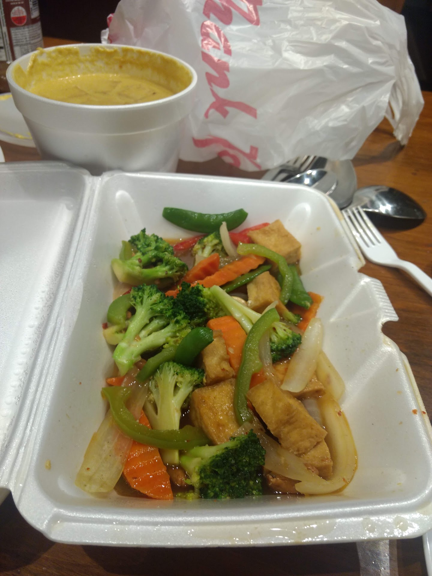 Read moreI'm not sure how the reviews are so good. The food gets 4 stars, the service gets 2. Came on a Friday night for takeout, the restaurant was half full, several empty tables with dirty dishes on them. She said takeout would be 25-30 minutes, it was a solid hour. We asked about vegetarian options and she only suggested the simple vegetable stir-fry. So we talked a little more and she couldn't even tell us if the Tom yum or the Tom kha were vegetarian broths. When we finally we're able to order, we ordered (all with tofu) the drunken noodles (9.99), the golden thai Curry (10.99), and pad cashew (9.99), with a mango sticky rice (5.99) for dessert. Ordering was complicated and she had us going back and forth in the restaurant, so when we did finally order I'm not sure we knew what we got. When she did, it was $50+, and we only realized on the way home she overcharged us by at least $10. We were able to get that fixed after calling them. After leaving and coming back 30 minutes later as she suggested and waited without anyone coming to the front for at least 10 minutes (same tables still with dirty dishes on them), she finally popped her head out and was surprised to see us. Sure then searched for our food. Thirty minutes later she came out with it and we brought it home. As for the dishes, the curry was surprisingly good but mostly sauce, the noodles pretty good but underseasoned, the pad cashew was sweet with few cashews but the veggies were fresh. As a lover of mango sticky rice, I was sad. Underripe mango and a super thin slab of rice. My husband called it sticky rice leather. So, I'm sounding pretty negative, I know and I hate that, but I am simply making sure you have enough info to not make the same mistake we did and trust all the amazing reviews. It's decent food, but not the best ever like the reviews might lead you to believe. And if you have time constraints, don't trust their...