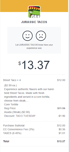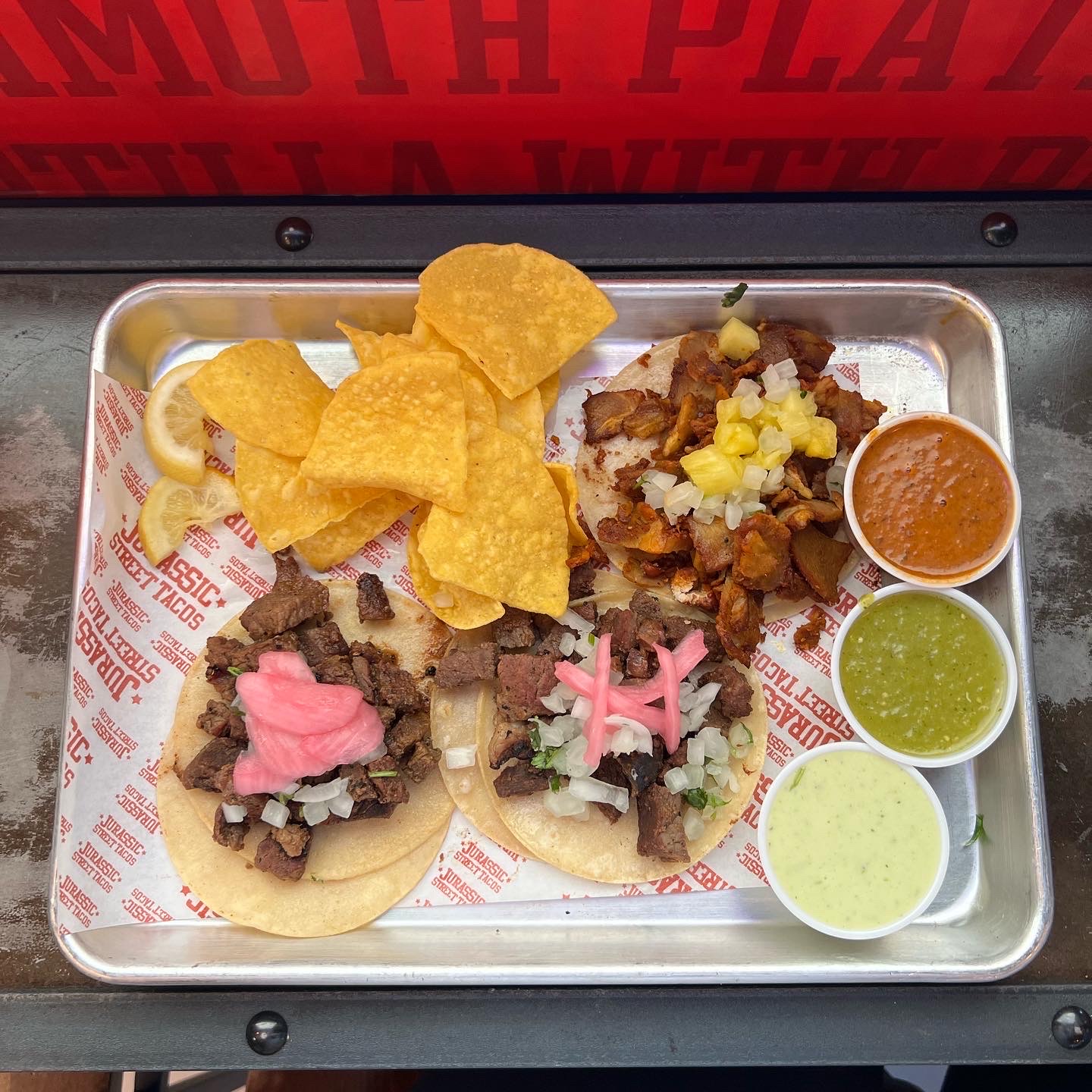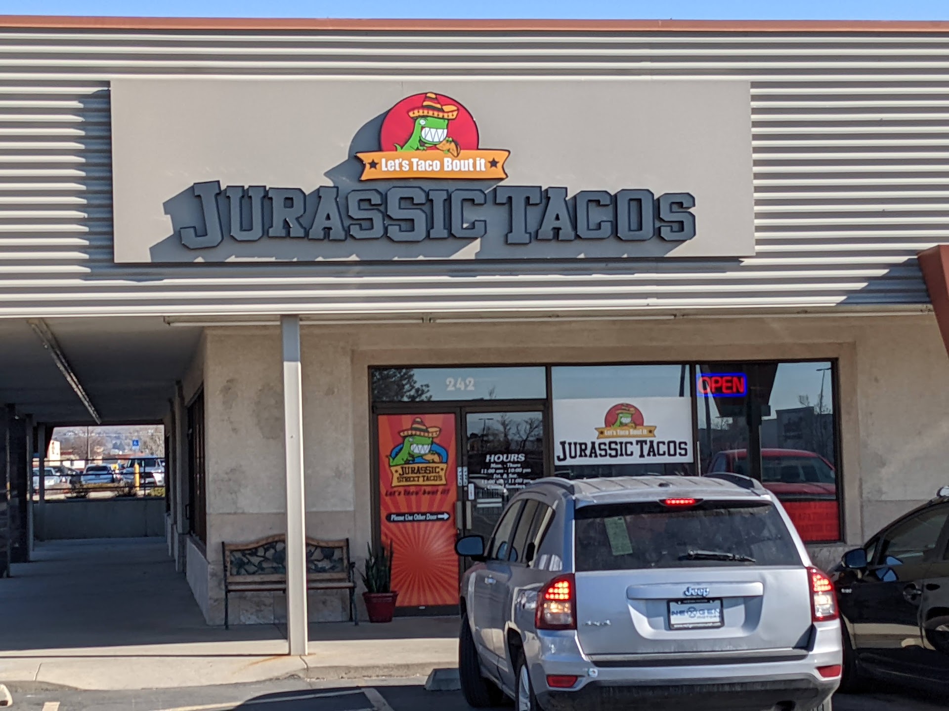 Read moreOkay so, I've been seeing lots of posts on social media about Jurassic Tacos. So when we drove past tonight, while looking for dinner options, I was excited to give this a try. We've never eaten here and I really didn't know anything about the food. So we walked up to the counter and eventually the employee walked over and greeted us. I explained we'd never been there and asked what he recommended. He pointed to a couple things on the menu and wasn't very helpful. We ended up picking our items and finding a spot on a side bar area to sit. It was pretty cramped and uncomfortable for our family of 5. They didn't have any high chairs or boosters for my toddler. Anyhow. When our food came out we didn't think there was space for us to eat so we just took our food with us. When we started eating we had some good things to say about Jurassic Tacos. The portion sizes are huge and the flavor of the meat was pretty good. However, everything seemed pretty bland. Most of the way through our meal it dawned on me, there was a toppings bar along the far wall we'd totally missed. Which probably explained the boring bland nature of our Tacos. In the end, I think the service was so poor and they didn't introduce us to the food or remind us about the toppings bar. I did mention it was our first time. We're willing to try Jurassic Tacos again, but won't be back to this location. Especially since there really wasn't room for our family to...