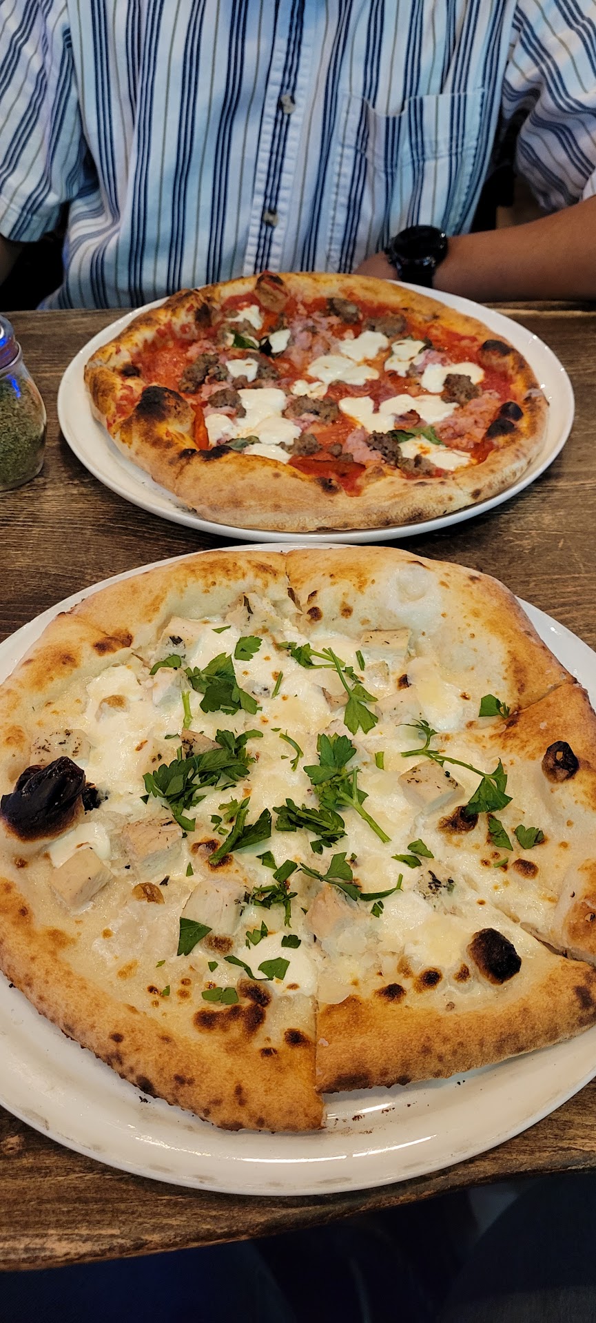 Ā Ā Ā Read morePizza was awesome and customer service is unmatched! They were crazy busy, and I show up with my wife and 4 rambunctious boys and hand them a bunch of free pizza coupons we got at the parade. We ordered their fancy delicious Italian cream sodas. We got our margherita pizzas, which were fantastically delicious, and were understandably waiting awhile for the barista to make our sodas since they were super busy. After awhile we asked about the drinks and they checked and came back apologizing for taking so long, explained they dropped the ball, then presented us with a receipt showing they had refunded our drinks and explained they'd bring our (now free) drinks to us shortly. We got our delicious drinks and then my 5 yr old started doing the potty dance. He jumped up to hurry to the bathroom, but in the process knocked over his drink, shattering the glass and making a huge mess on the floor. They came right over, didn't act annoyed at all, and cleaned it up all the while being friendly and chatty with us. I will be returning over and over on this experience alone (as long as they'll still let us back in after feeding my family of 6 for free and then having us trash the place)....